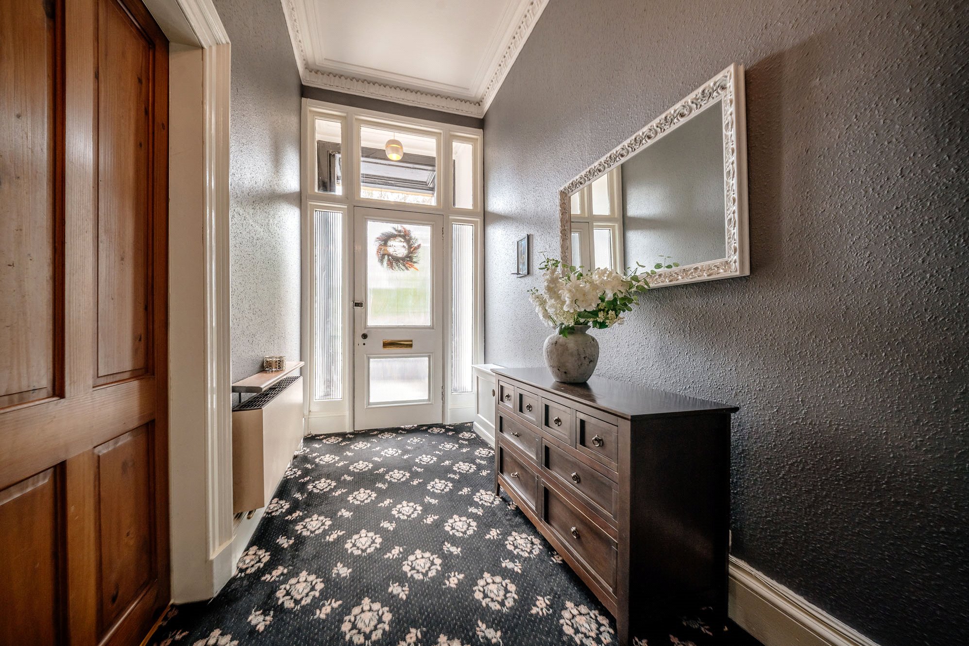 Cluny Villas is an attractive and much sought-after blonde sandstone terrace, discreetly positioned in one of the leafiest parts of Jordanhill – off the easternmost end of Westland Drive, just off Eastcote Avenue and not far from Abbey Drive. This location is particularly convenient not only for access to local schools – the primary driver of demand for this postcode – but also for amenities on Crow Road, in Broomhill, and the beautiful open expanse of inner-city green space found at Victoria Park. Jordanhill Rail Station is within a ten-minute walk.