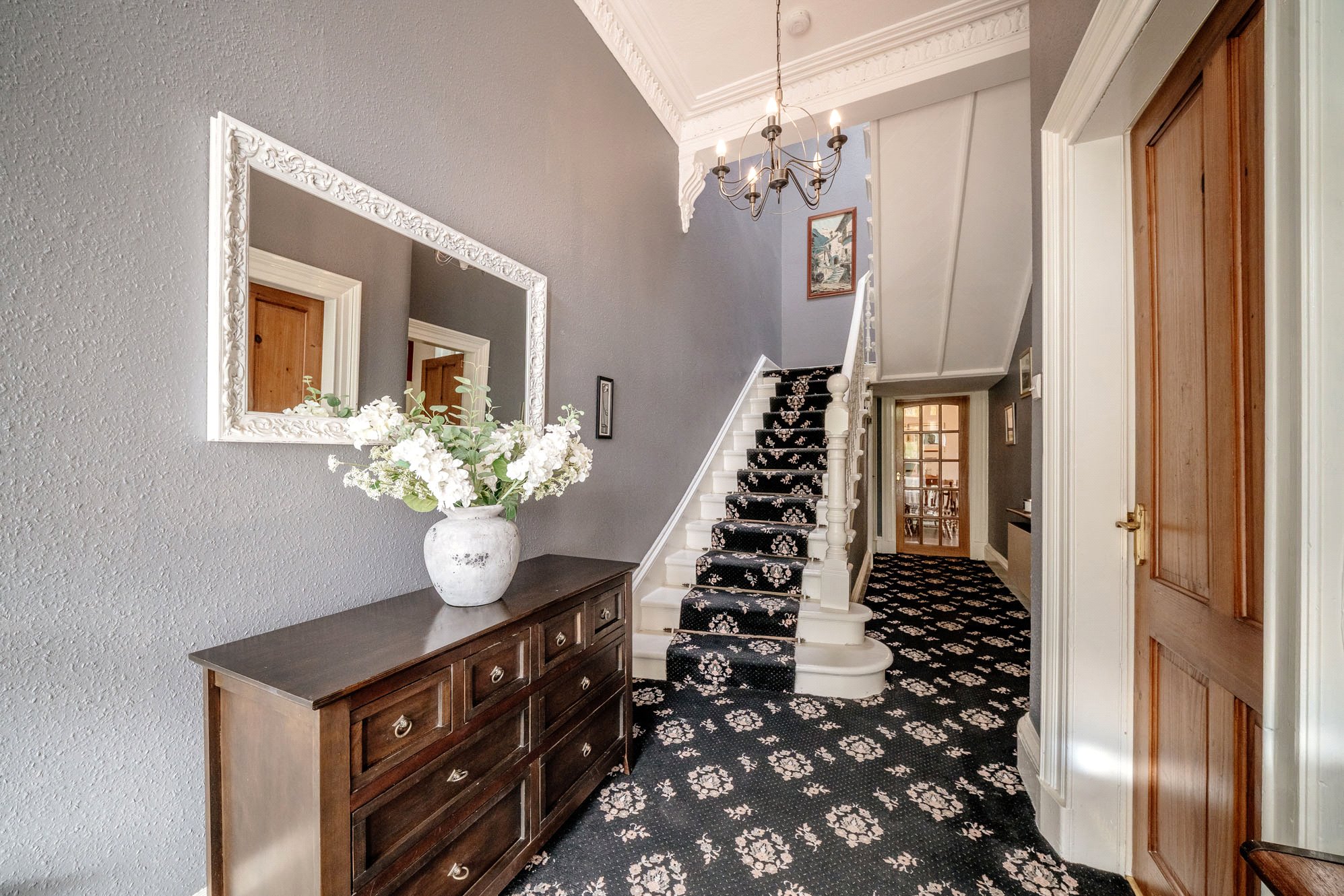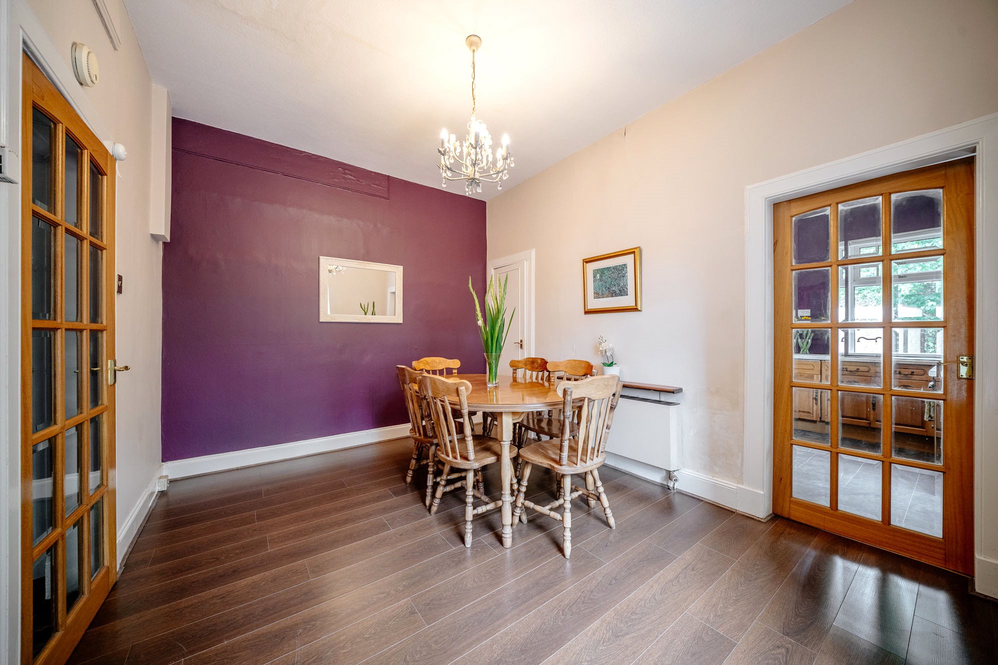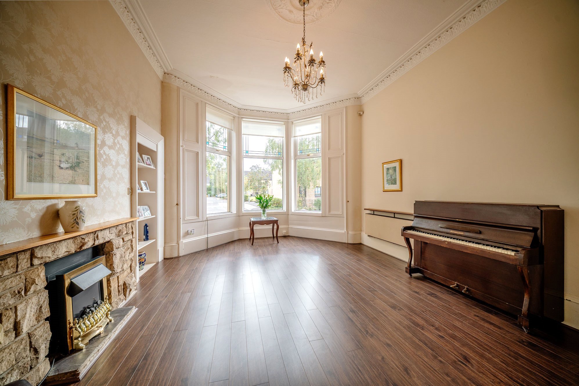 Tucked away in a leafy corner and situated within the highly sought-after List 1 catchment for Jordanhill School, this substantial four-bedroom, three-public-room elegant, south facing blonde sandstone end-terrace villa offers spacious traditional family accommodation over two principal levels and benefits from an attic-level fourth bedroom.