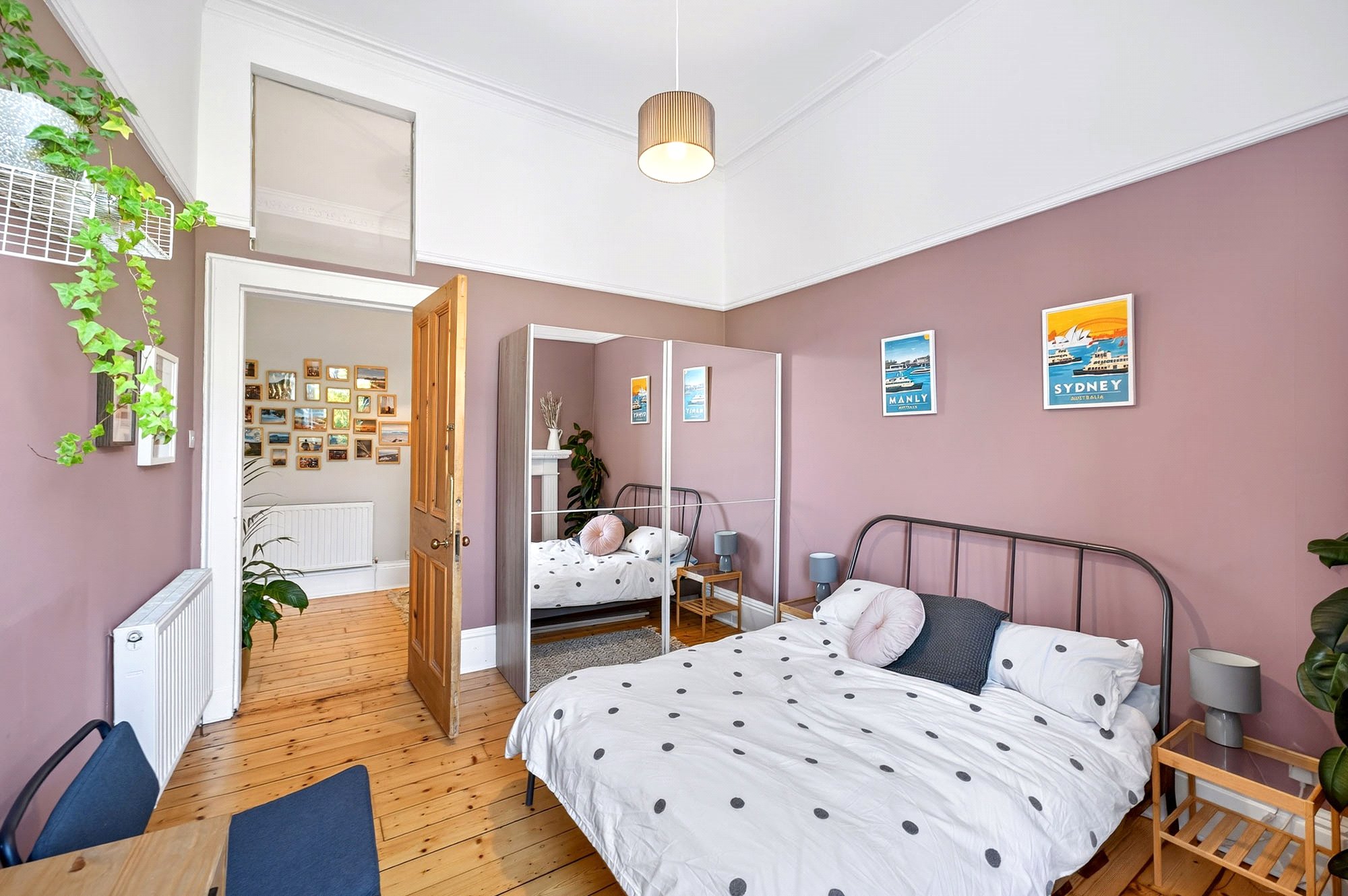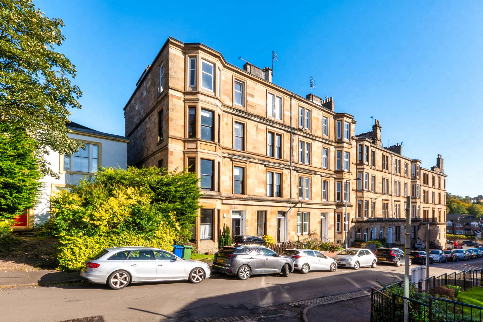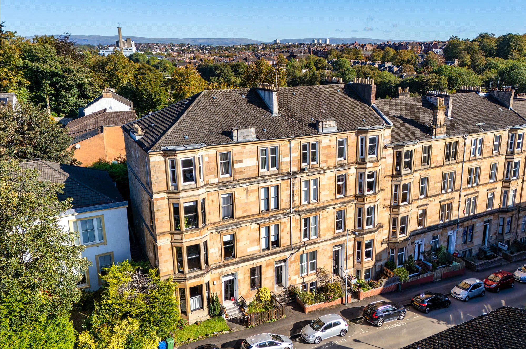 The property itself boasts a wonderfully spacious layout, with each of the principal apartments benefiting from great ceiling height that enhances the sense of space and light throughout. The living areas are versatile and offer the potential to be used in a variety of ways, making it suitable for those needing a dedicated home office, a growing family requiring extra bedrooms, or students seeking ample living space within walking or cycling distance of Glasgow University. The accommodation is arranged as three well-proportioned bedrooms, a bright and welcoming living room, a generously sized and well-appointed dining kitchen, and a modernised main bathroom with a white suite. The property also has the added benefit of a private storage cellar at ground floor level, ideal for storing bikes vertically etc