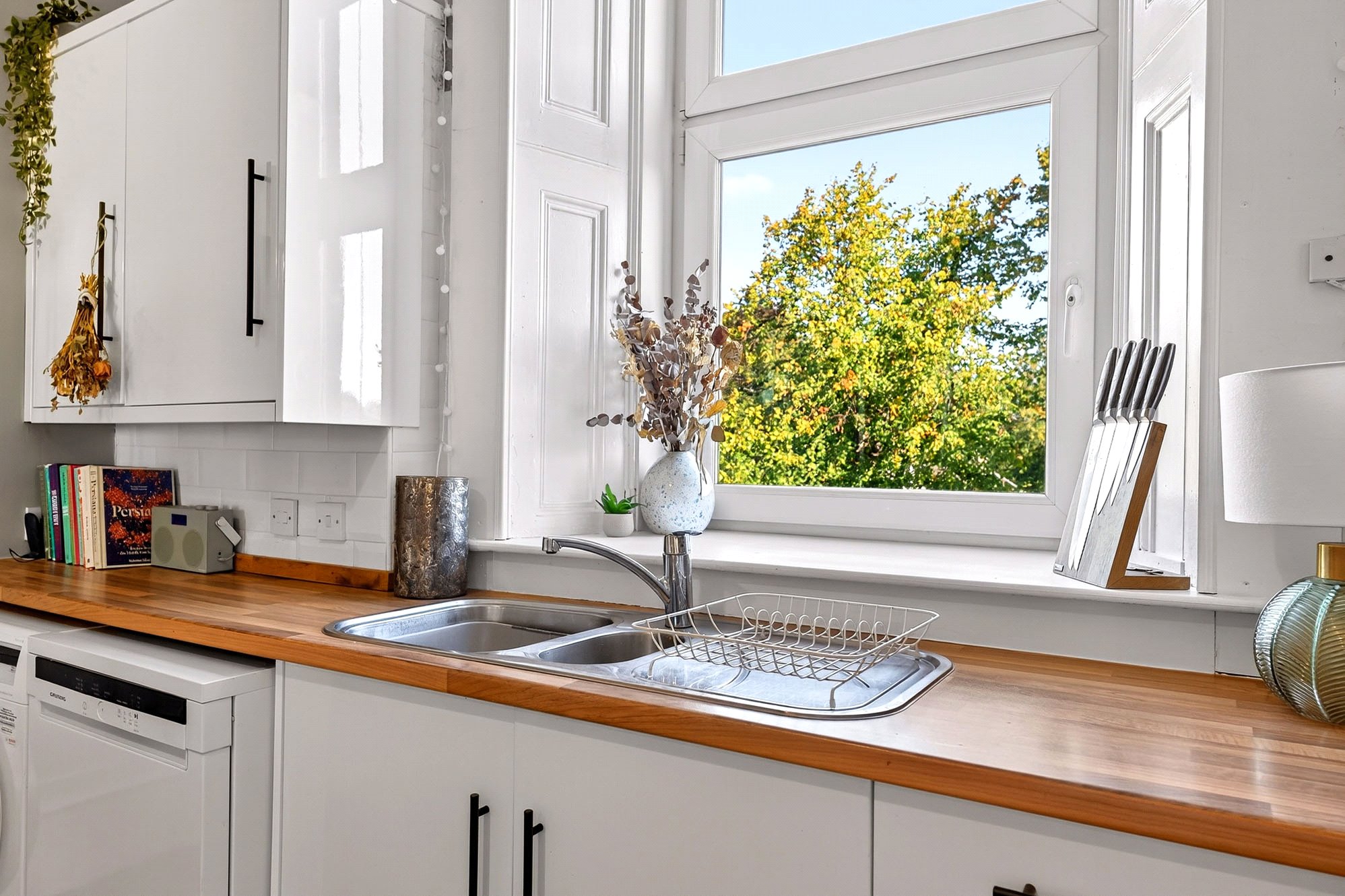 As mentioned, the positioning of the property is one of it’s finest attributes. Laurel Street is a quiet address and number 12 is an elegant blonde sandstone tenement which faces South and just happens to be opposite a gap in the built-up landscape – meaning the property for sale enjoys not only great levels of privacy but superb open views to the South.