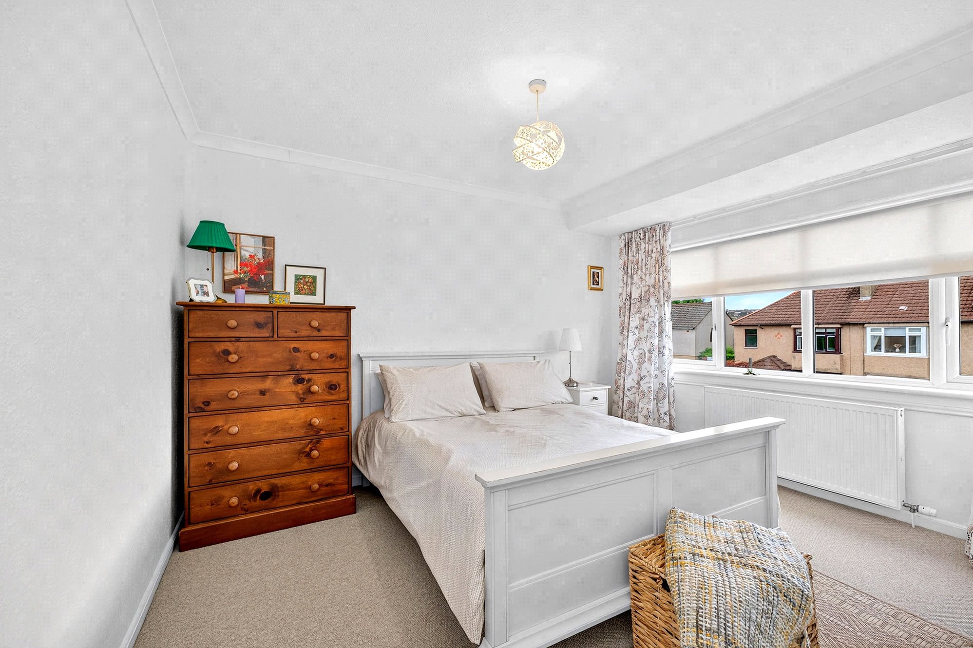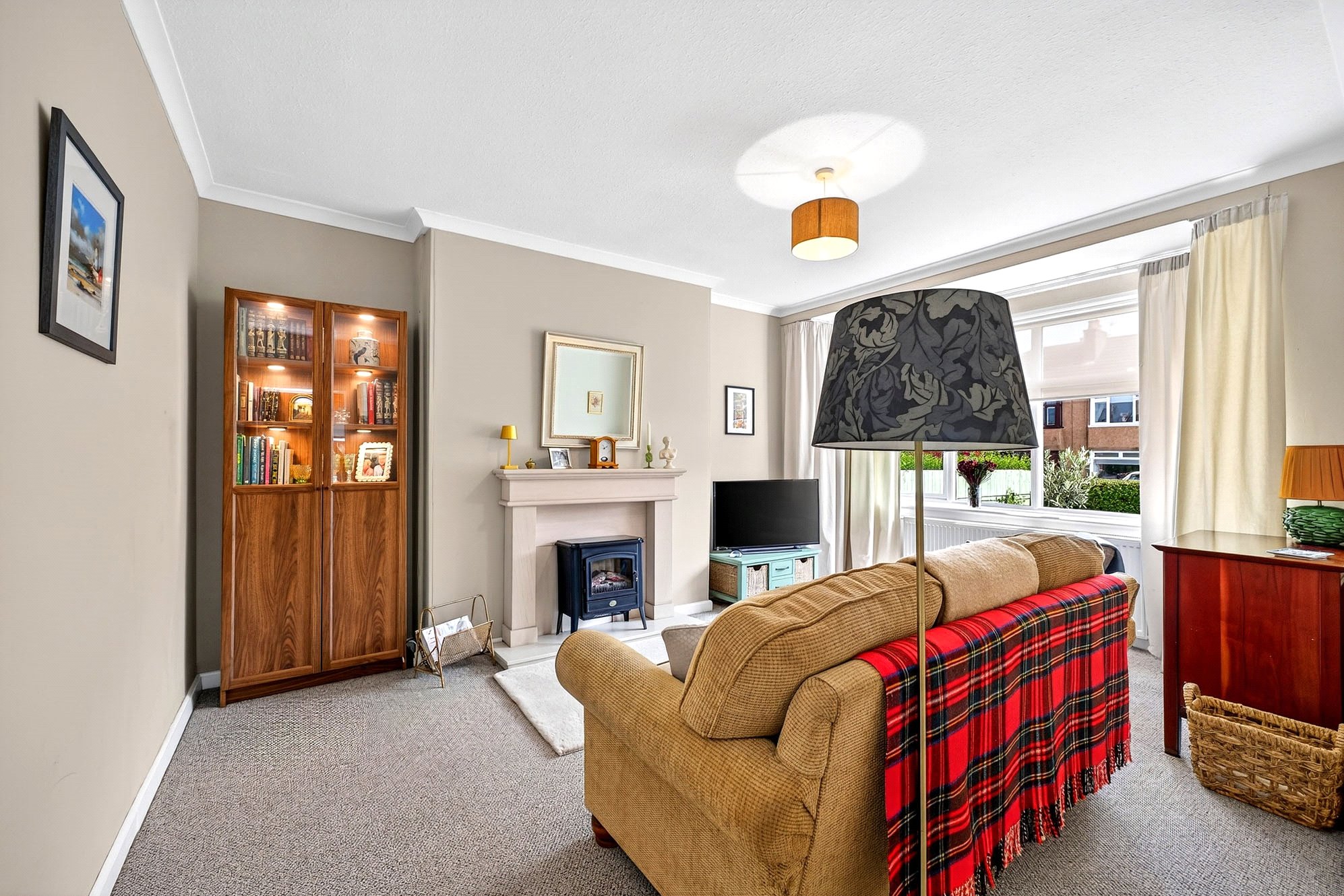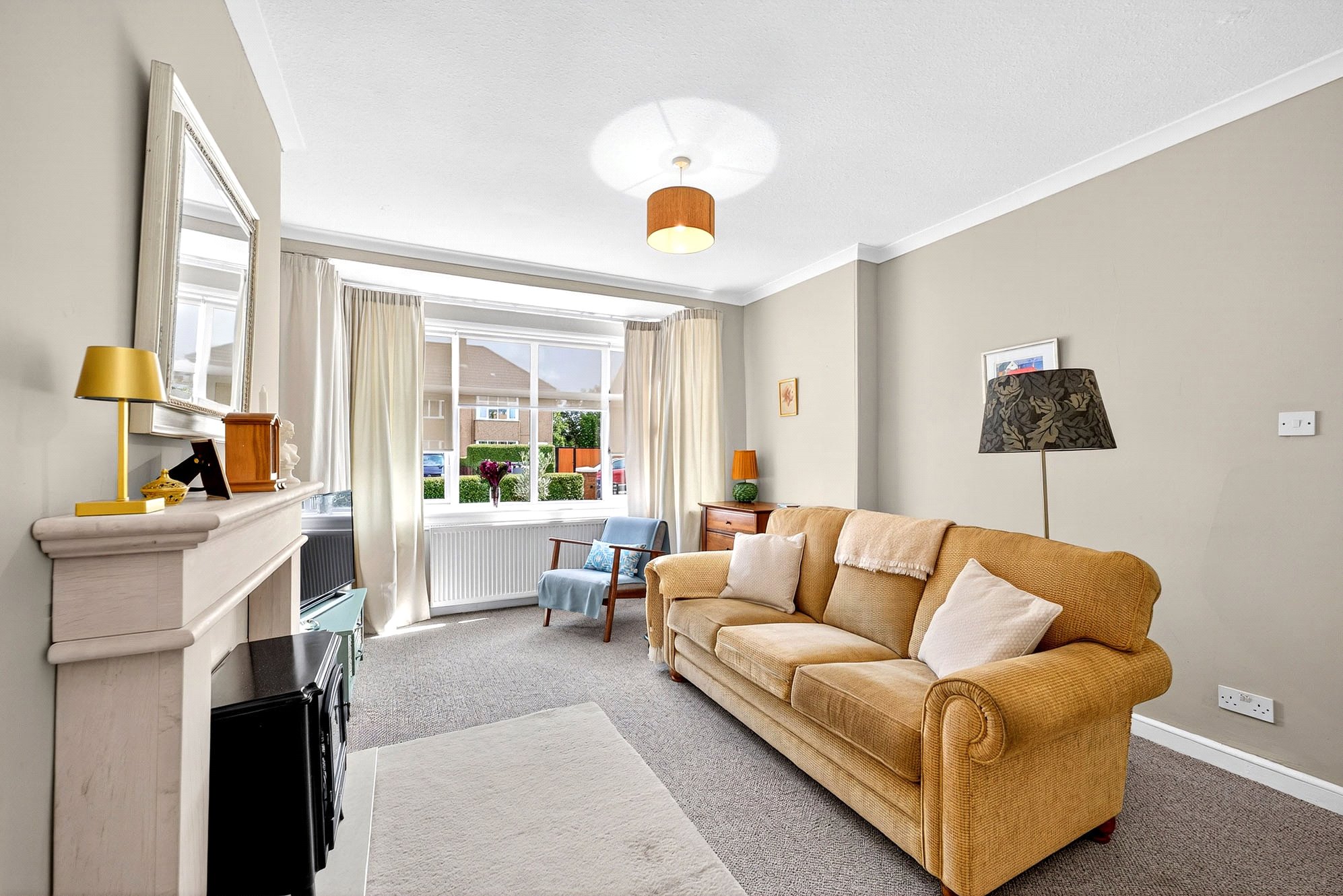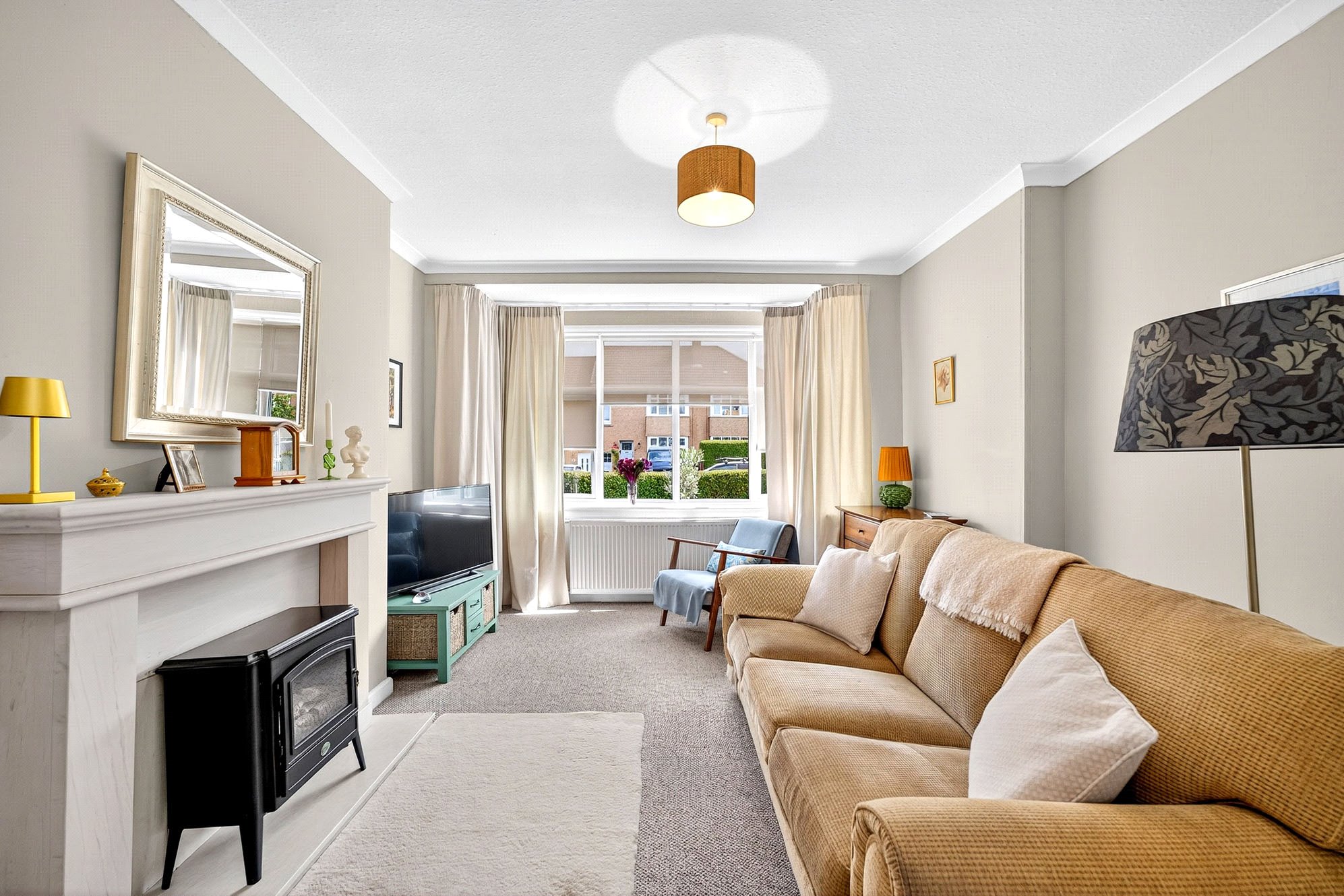 - Front-facing living room with box window