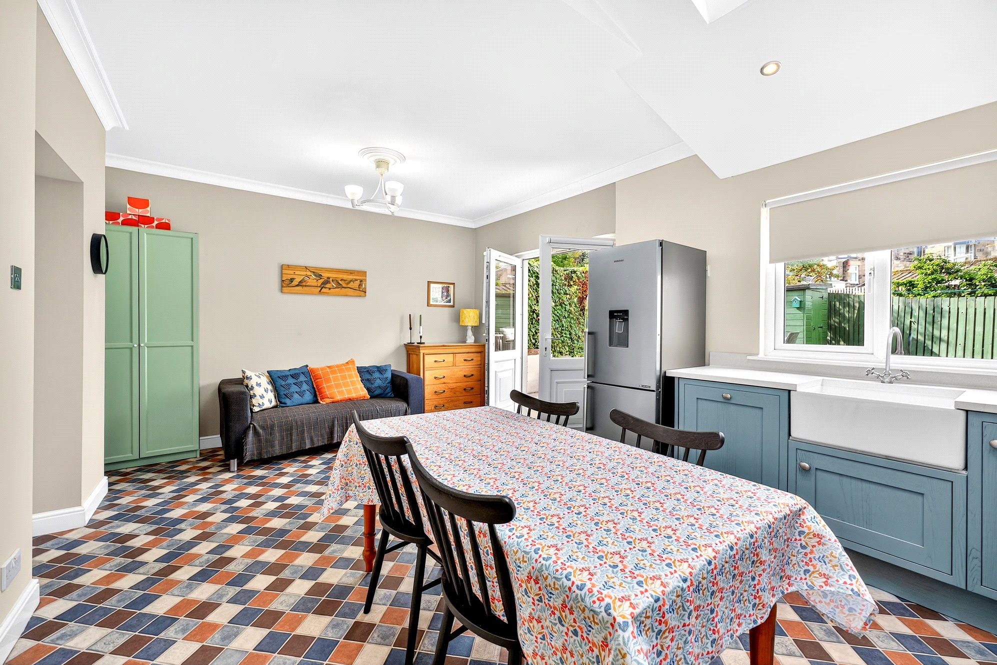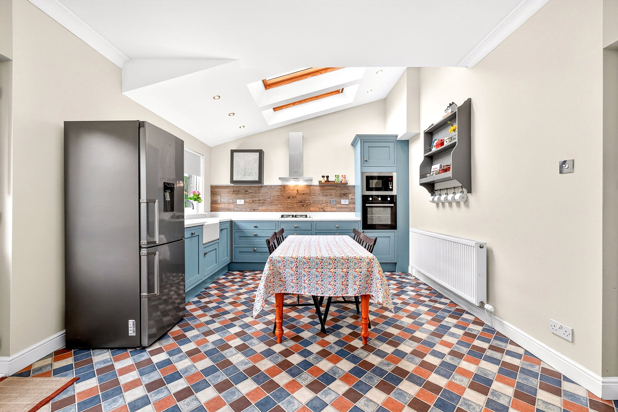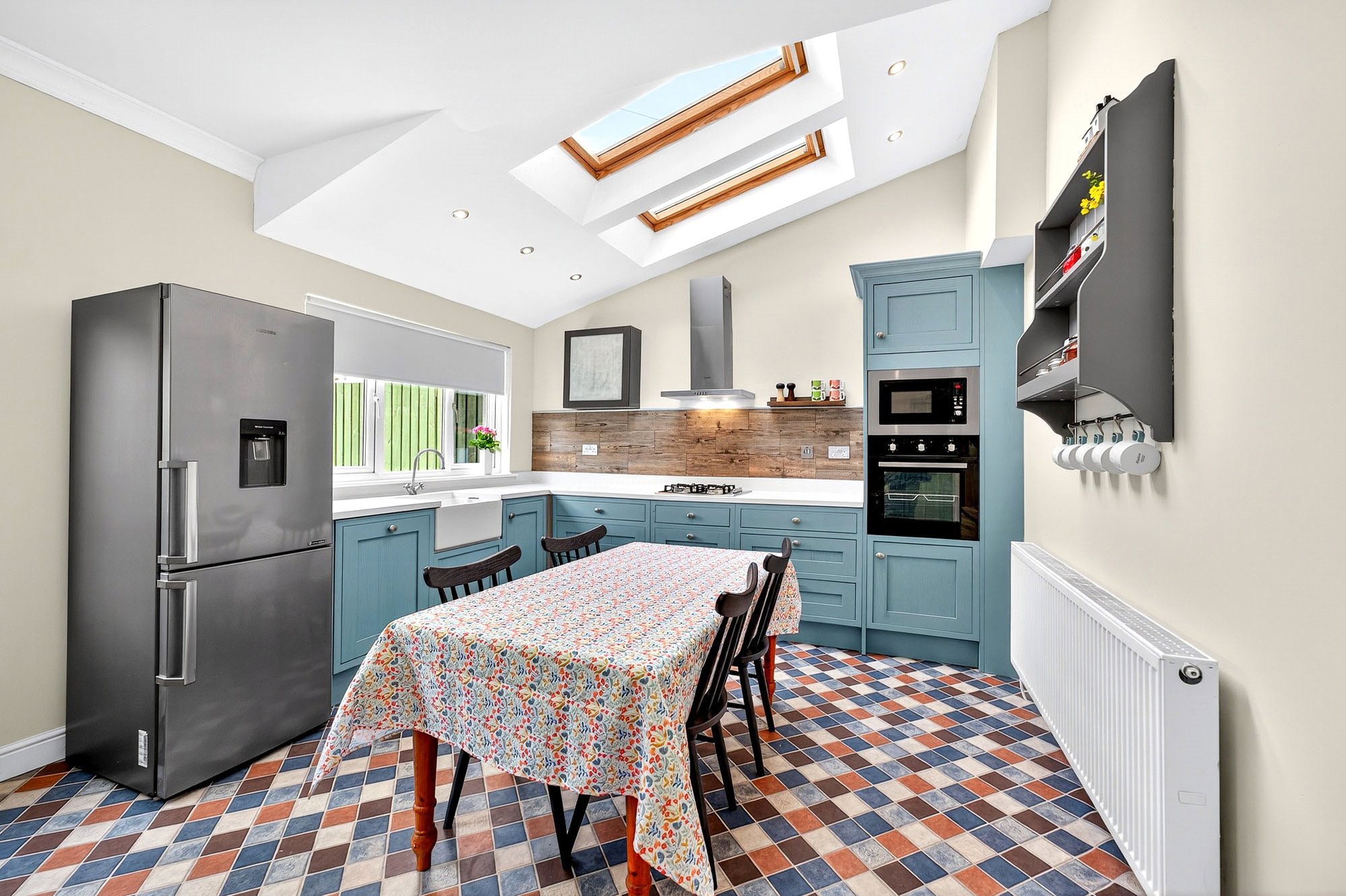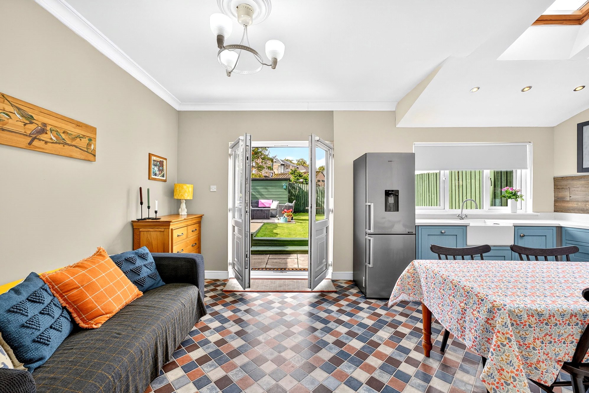 - Spacious, full-width dining kitchen with French doors and Velux windows