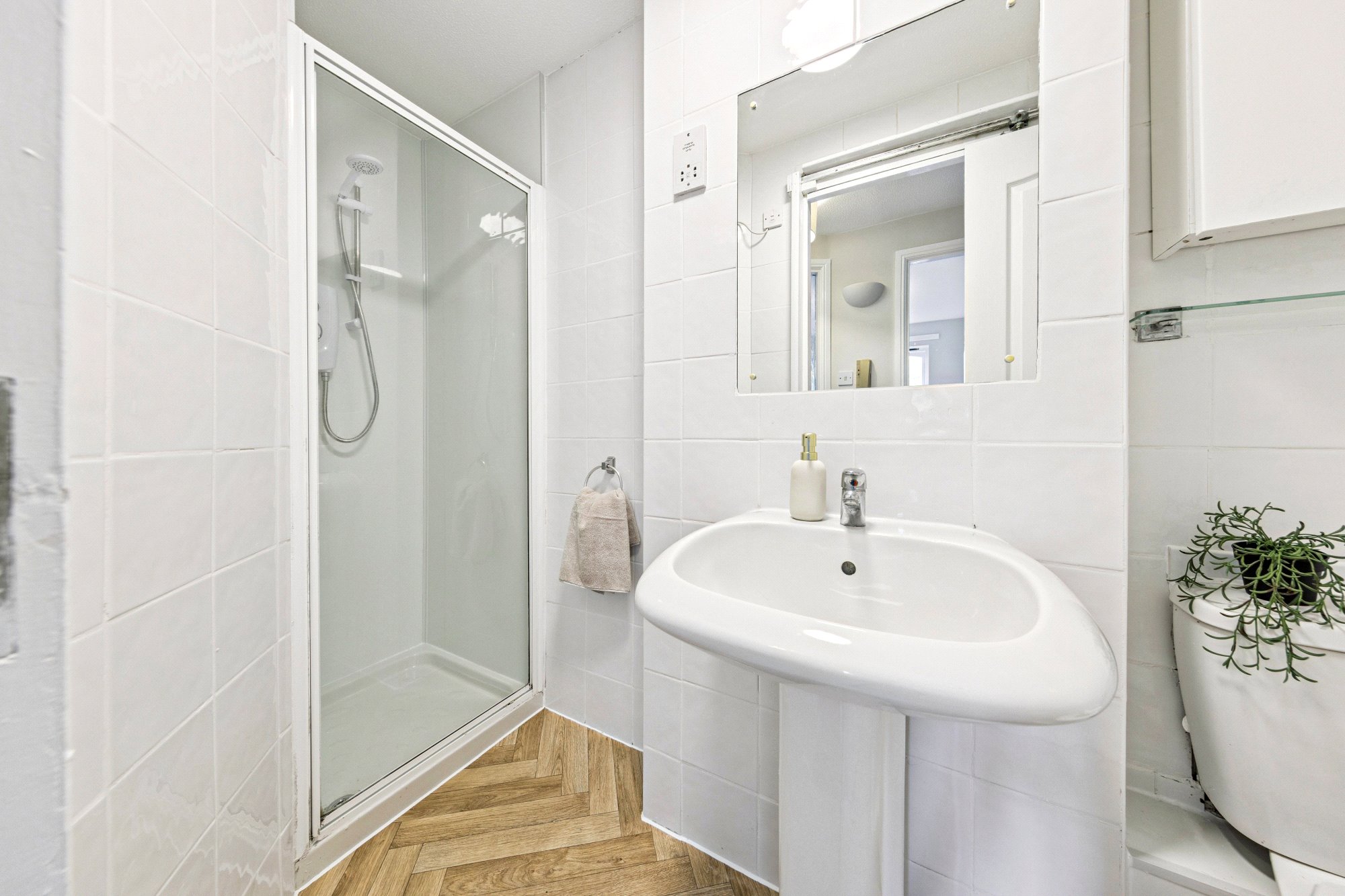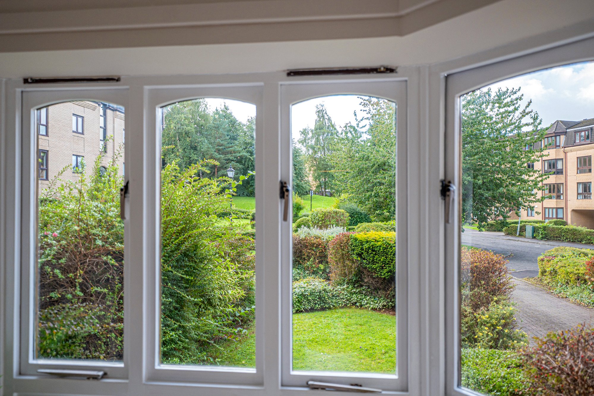 In brief, the accommodation extends to: entrance hall with storage cupboard, extremely bright living room with full-length windows offering lovely open aspects over the garden grounds, semi open-plan kitchen with integrated appliances, comfortable double bedroom, and a shower room with white suite.
