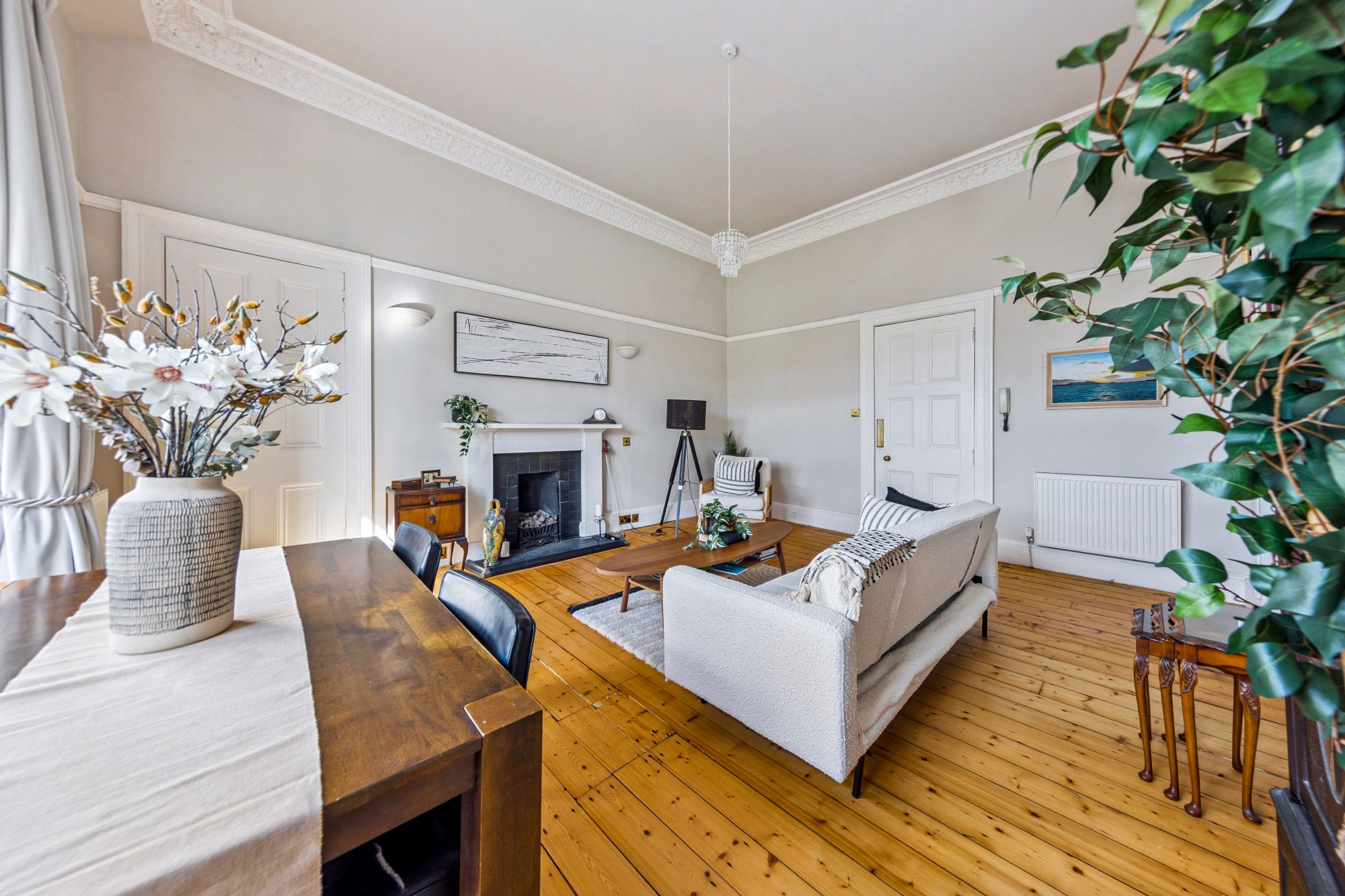 Set within an elegant blonde sandstone townhouse on one of the most exclusive addresses in Glasgow, this attractive and feature-filled traditional conversion occupies a prime West-facing position in Kingsborough Gardens. Long regarded as the jewel in the crown of Dowanhill, Kingsborough Gardens is renowned for its architectural elegance, peaceful setting, and beautifully maintained central residents’ gardens – to which the owner of this property enjoys private access.