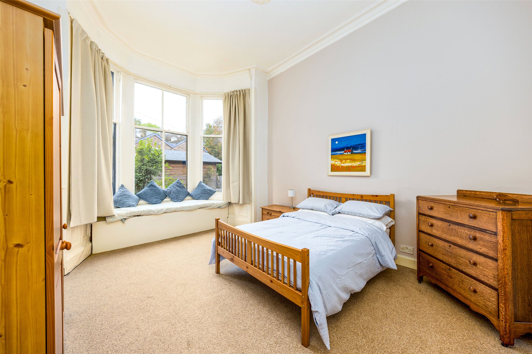 - Two particularly spacious king-sized bedrooms, including one with unique bay window seating area overlooking the rear gardens