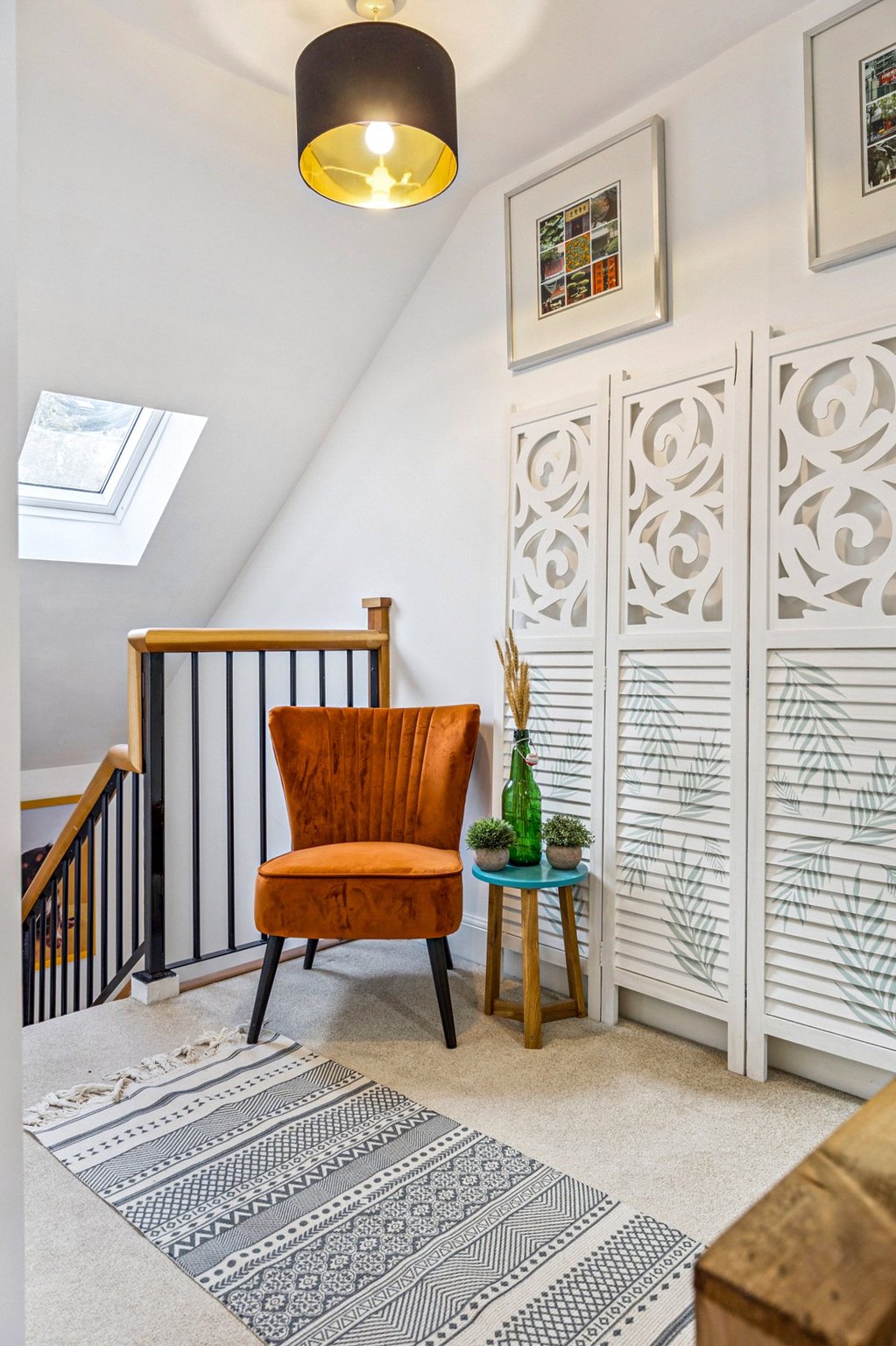 The stairway with half landing leads on to the upper level where there are two spacious double bedrooms and a third room which is utilised as a home office.