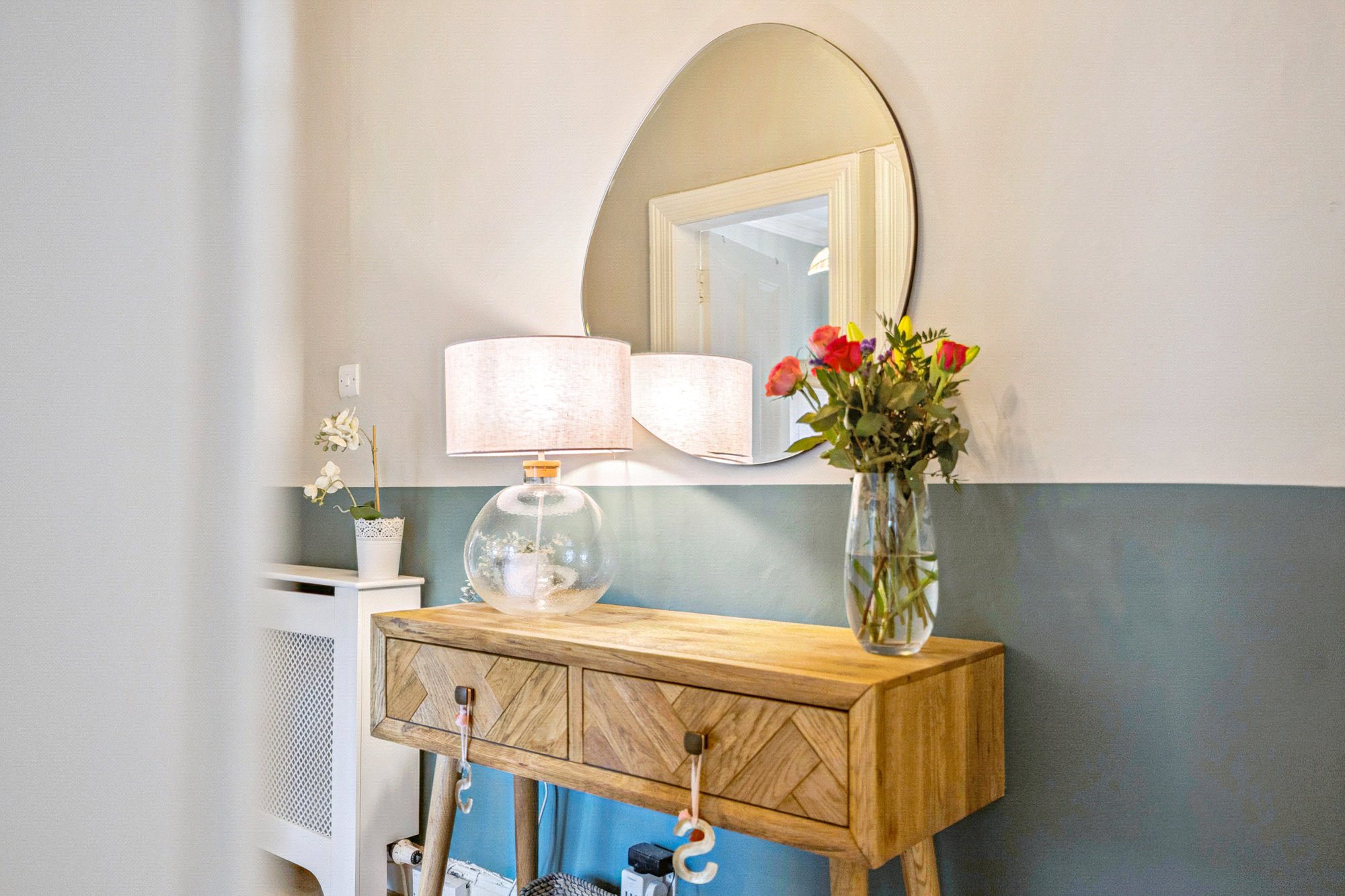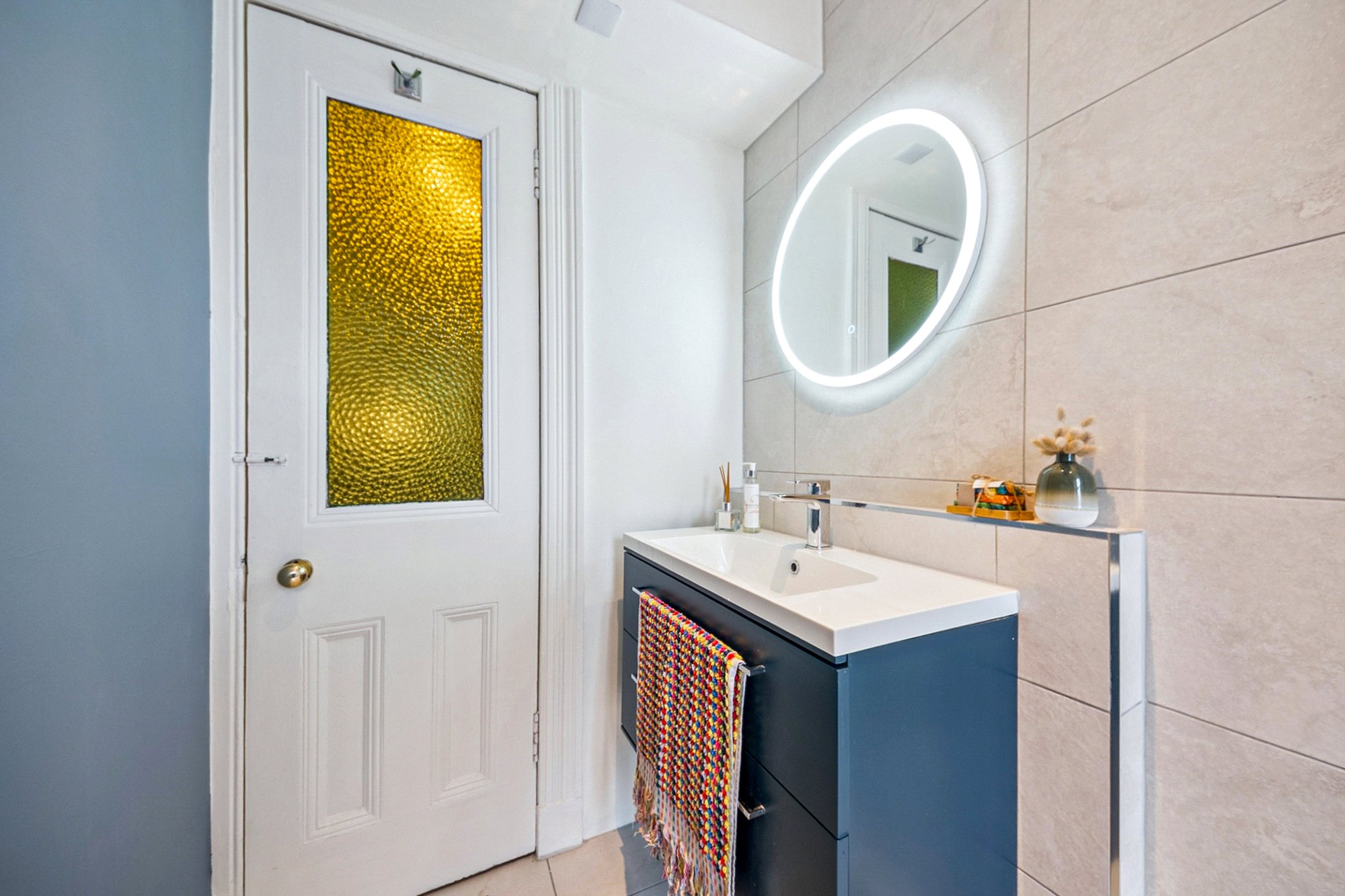 In terms of décor and style, the interior follows a tasteful palette of neutral tones, high-quality modern finishes and attractive carefully selected materials, all set against classic period features synonymous with West End tenements. The result is an elegant balance of traditional character and contemporary comfort. The accommodation includes a welcoming reception hall with a substantial storage cupboard, a lovely corner living room with bow window, a superb, refitted dining kitchen with Silestone surfaces and integrated appliances, two generous double bedrooms — the principal especially impressive — and a beautifully refurbished shower room with grey stone-effect tiling and striking LED “porthole” mirror.
