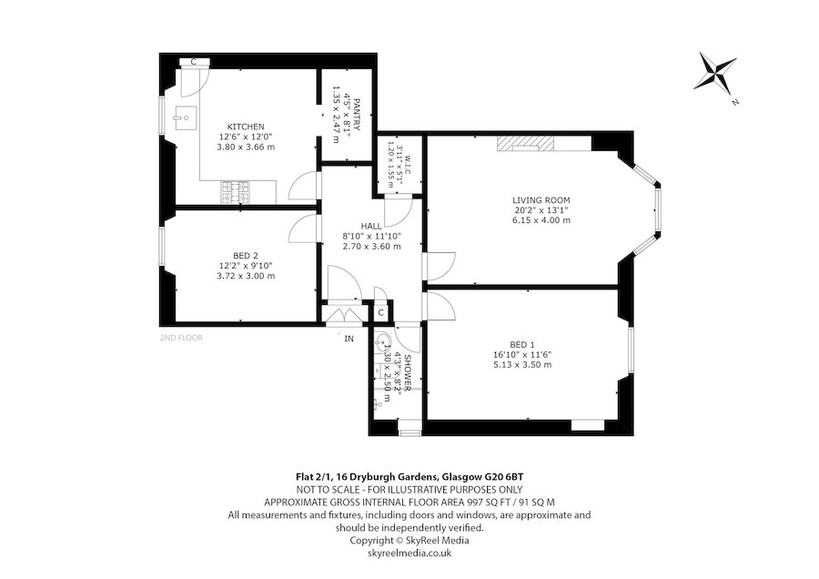 The building itself is slightly unusual within the North Kelvinside area, housing only four apartments in total – one per landing – which creates an enhanced sense of privacy and exclusivity. The property for sale occupies the second-floor position and benefits from pleasant open aspects to both front and rear elevations.