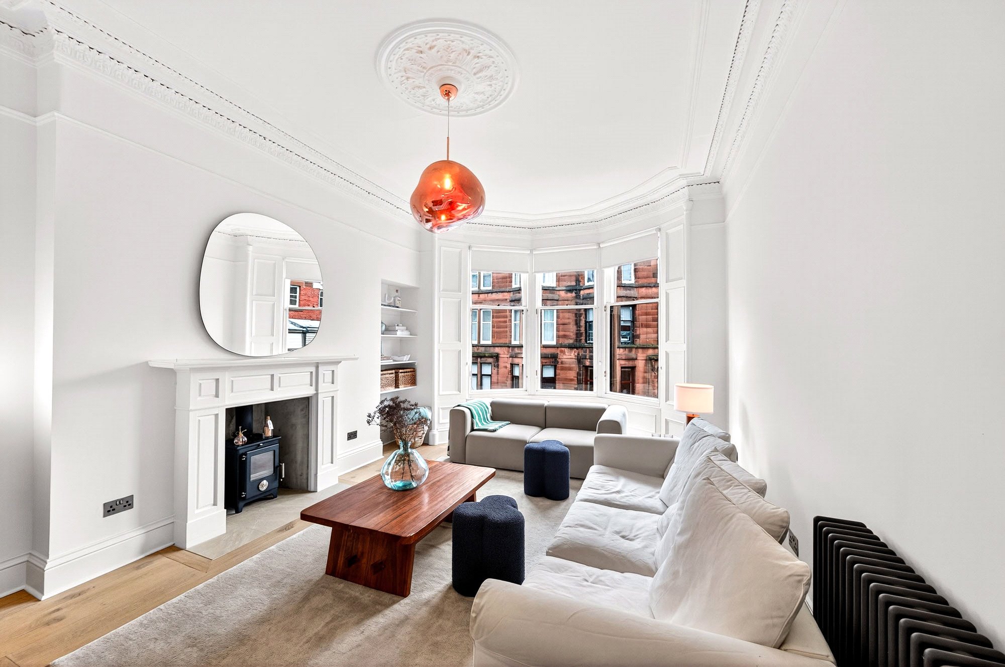 Dryburgh Gardens is an attractive and, being a cul-de-sac, particularly peaceful address in the leafy West End district of North Kelvinside. Known for its superb collection of beautiful red sandstone tenements, this charming locale attracts a broad spectrum of buyers including professional couples, students, and academics who wish to live within walking distance of Glasgow University and Glasgow School of Art. In recent years, this location has also become extremely sought-after amongst those with an artistic or creative background who wish to be well positioned for gaining quick access to the Royal Conservatoire, National Theatre, Whisky Bond, and Civic House. Dryburgh Gardens is also very well placed for quick access to major road networks and lies within minutes’ drive of the M8 motorway – making this a brilliant address for professionals who split their working week between Glasgow and Edinburgh.