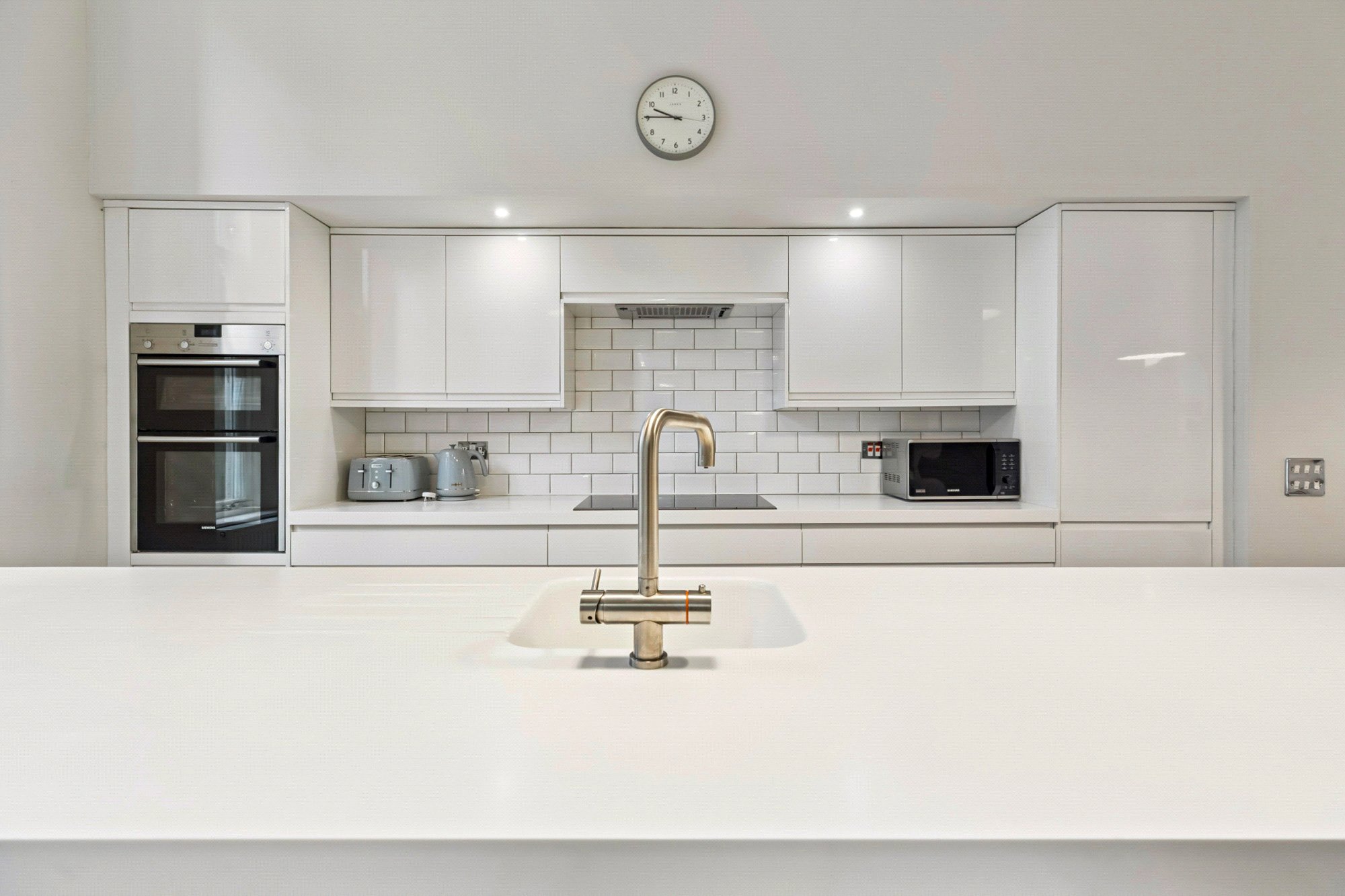 - Stunning open plan kitchen complete with a range of base and wall units, integrated appliances, central island, breakfasting bar and two section window to the rear