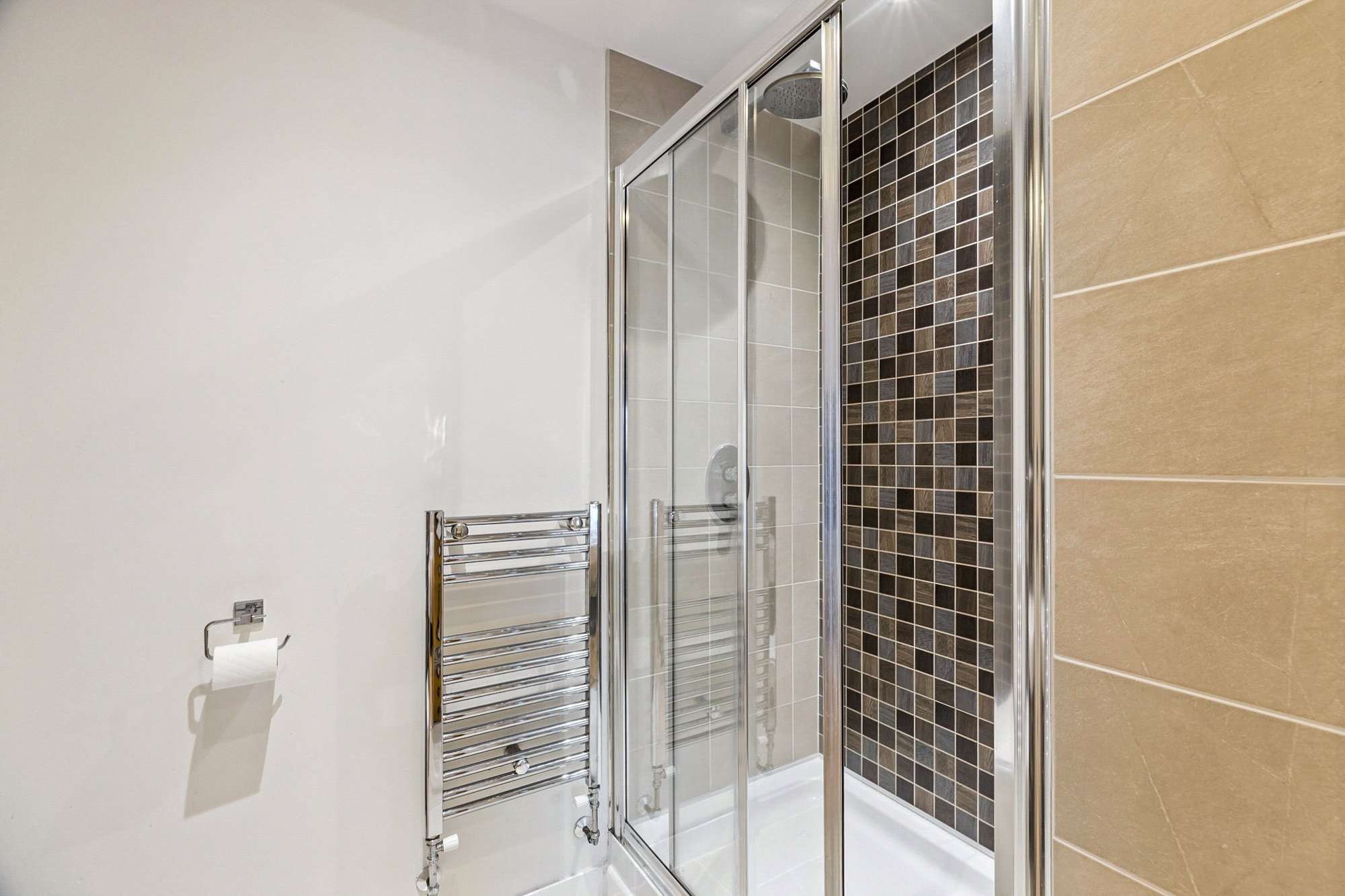 Both bedrooms are well-proportioned doubles, offering comfortable and versatile accommodation. The principal bedroom benefits from a stylish en suite shower room, while a modern three-piece bathroom serves the second bedroom and guests alike. Ample storage is provided throughout the apartment, ensuring excellent practicality for everyday living.