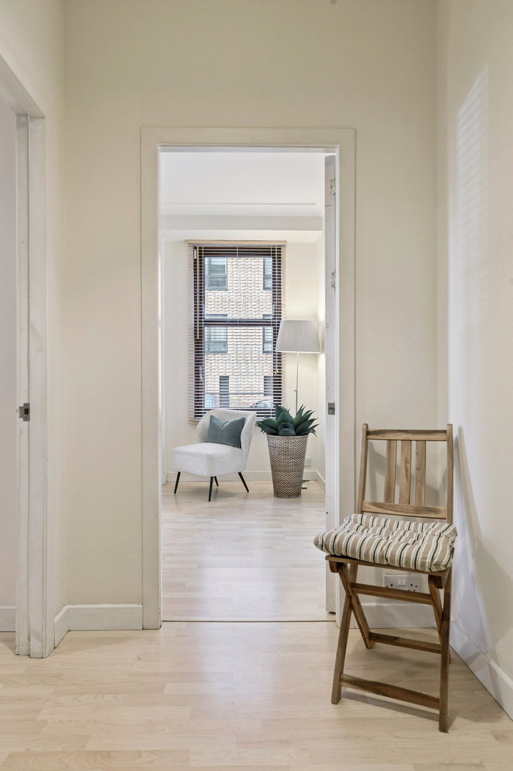 The apartment is bright and comfortably proportioned, with the dual-aspect living room serving as very much the centrepiece of the accommodation; a corner window draws in excellent natural light and frames a pleasant southerly outlook across Dowanhill Street. The reception hall facilitates excellent flow and keeps the principal bedroom nicely set apart from the main living spaces. The kitchen is separate and well fitted, with room for everyday dining, while to the rear there is access to a shared court, with Mansfield Park sitting just around the corner.