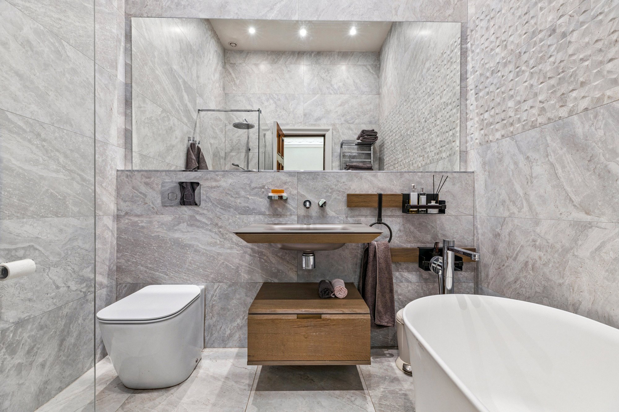 - Four piece family bathroom with contemporary shower cubicle, curved luxury bath, large focal mirror, skylight and electric underfloor heating.