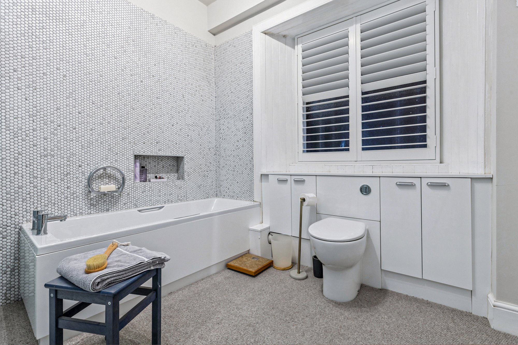 - Four piece bathroom with separate shower and window to the front with plantation shutters.