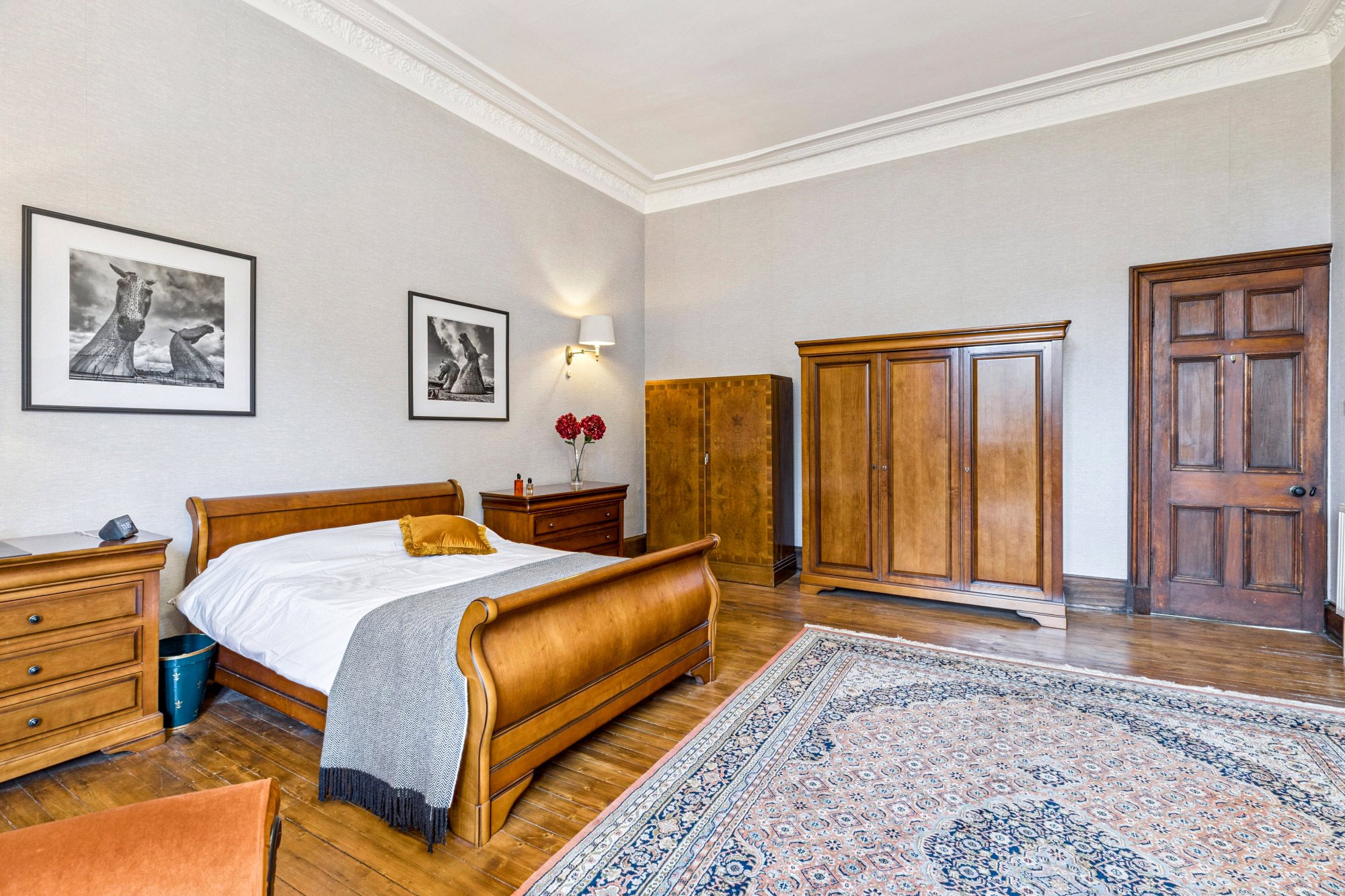 - Principal (main) bedroom with tremendous bow window, south facing aspect, traditional wooden flooring and original ceiling cornice.