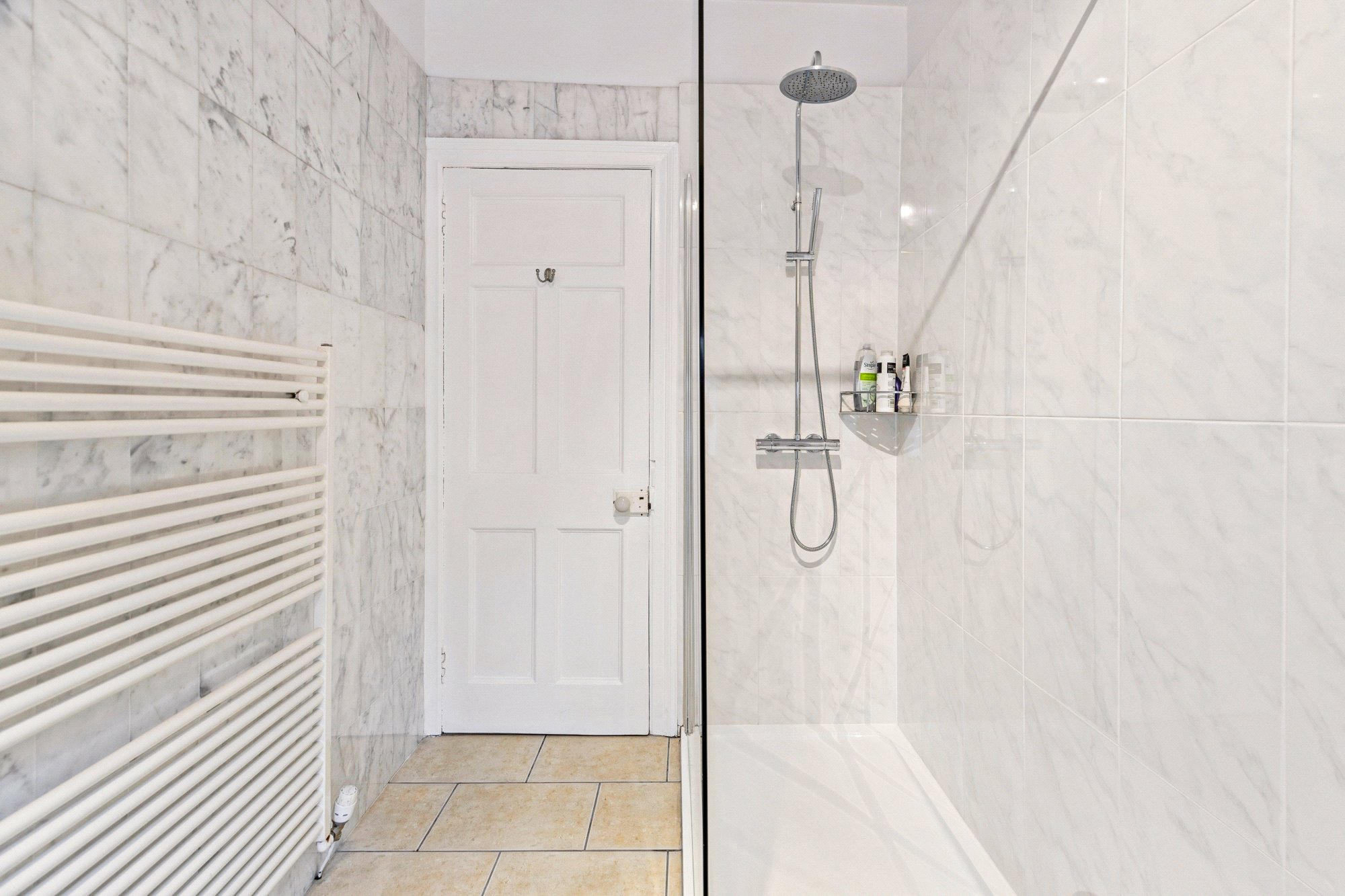 An atypical ground floor shower room provides exceptional convenience and is infrequently found in homes of this nature, with the characteristic mid level landing hosting a second shower room. Three double bedrooms comprise the first floor, while the top floor extends into the attic to provide two additional bedrooms and useful eaves storage.