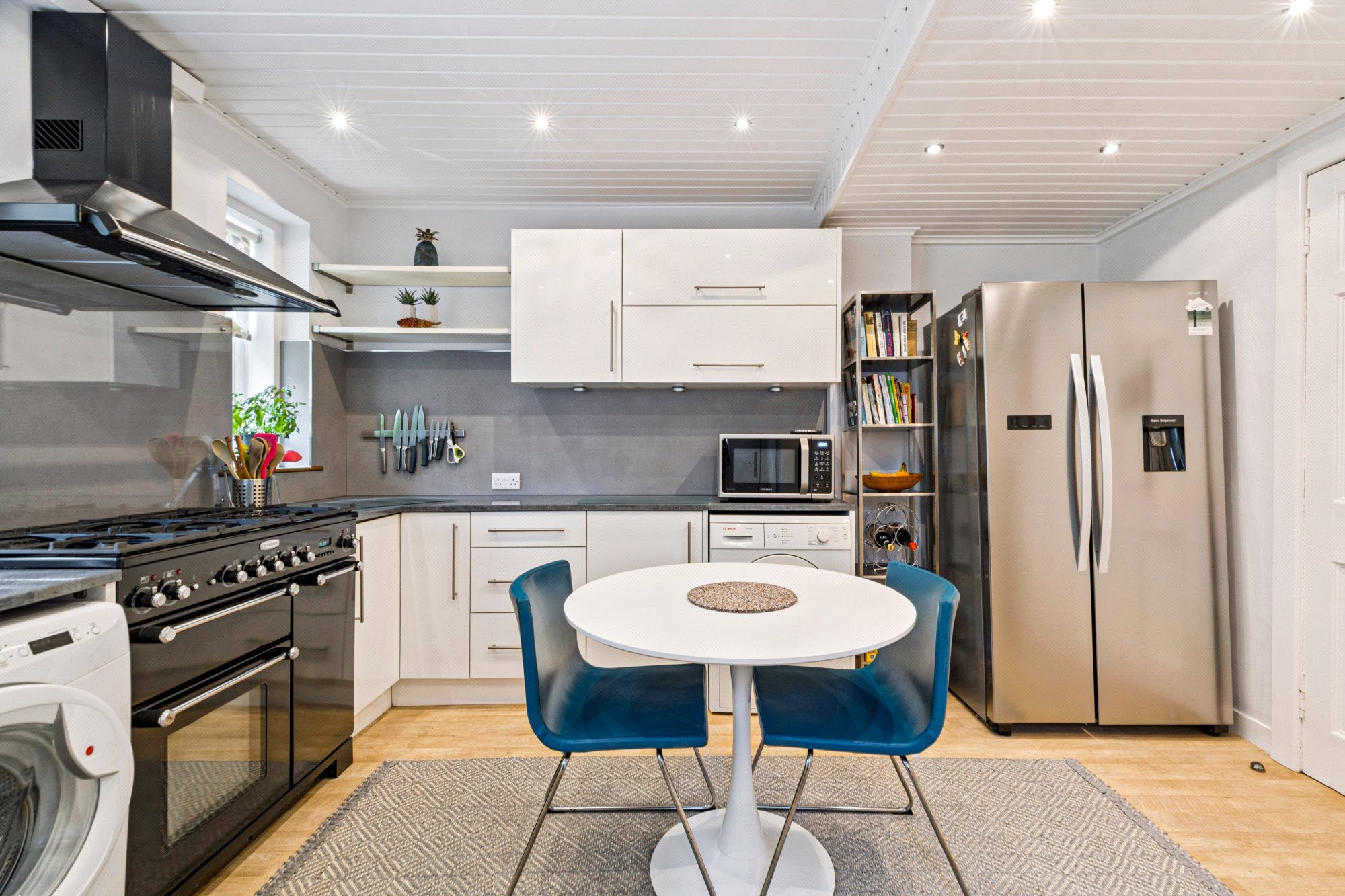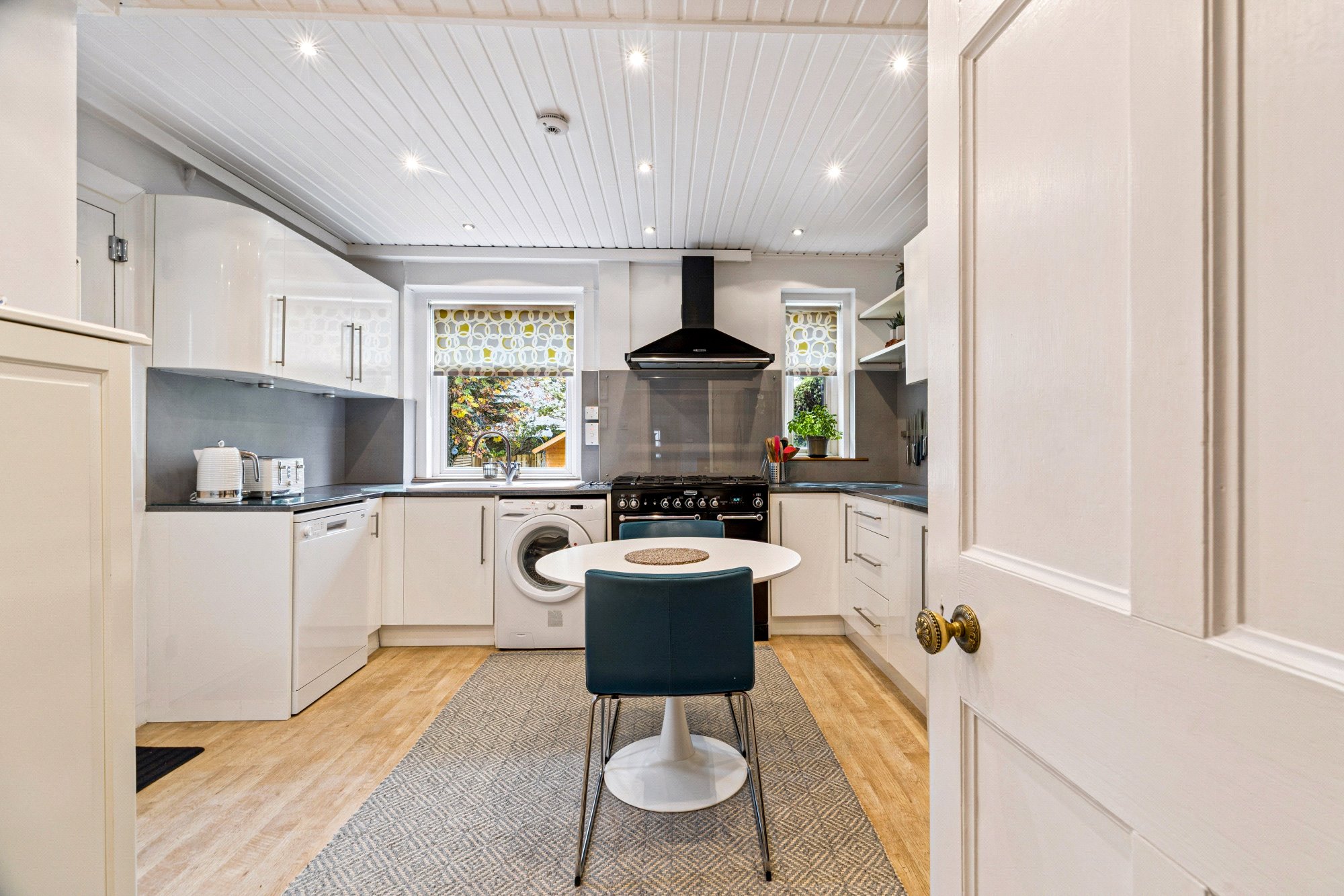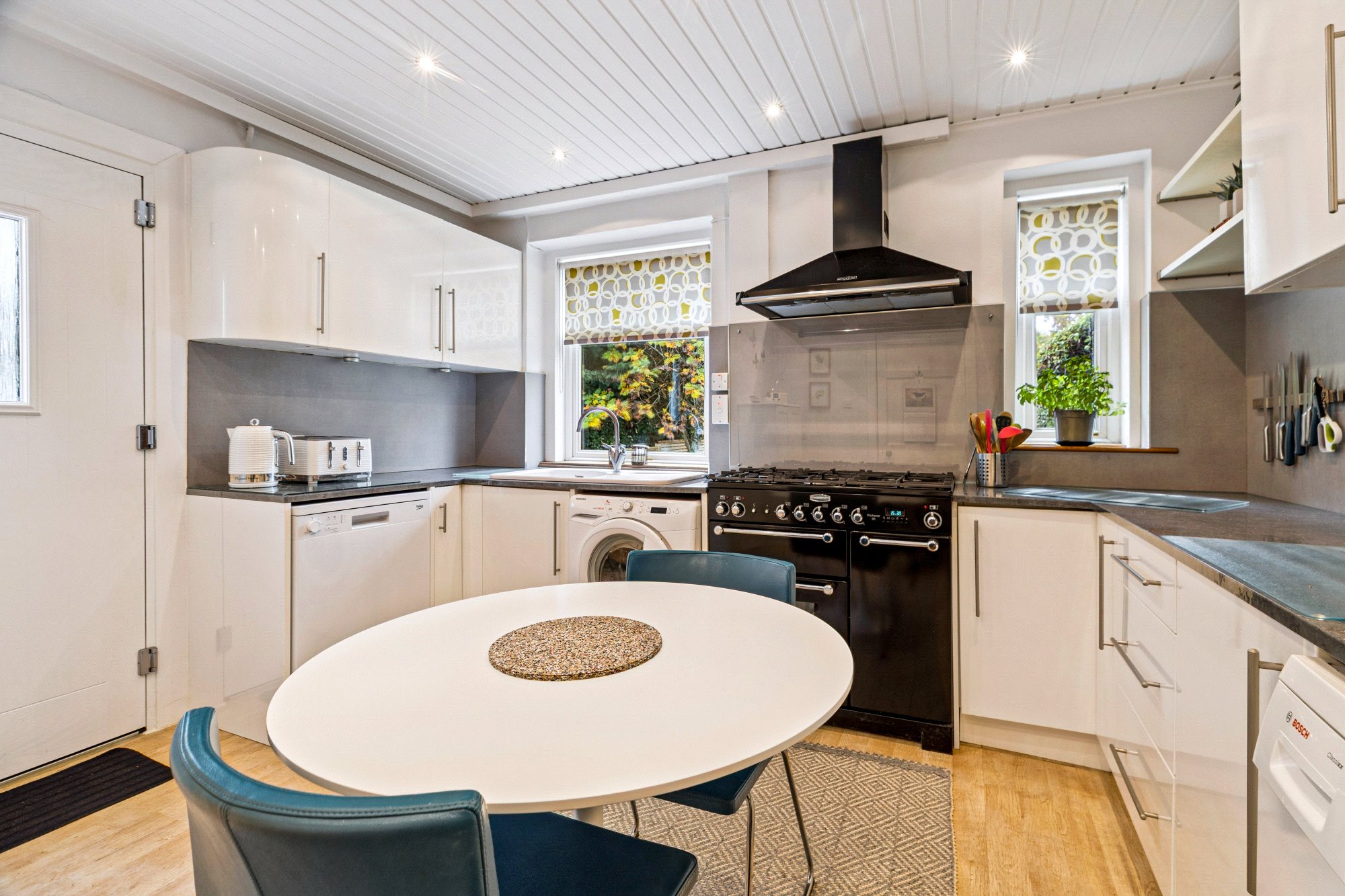 - Superbly presented, fitted dining kitchen with two windows to the rear, storage units, worktops, appliances and door to the garden.