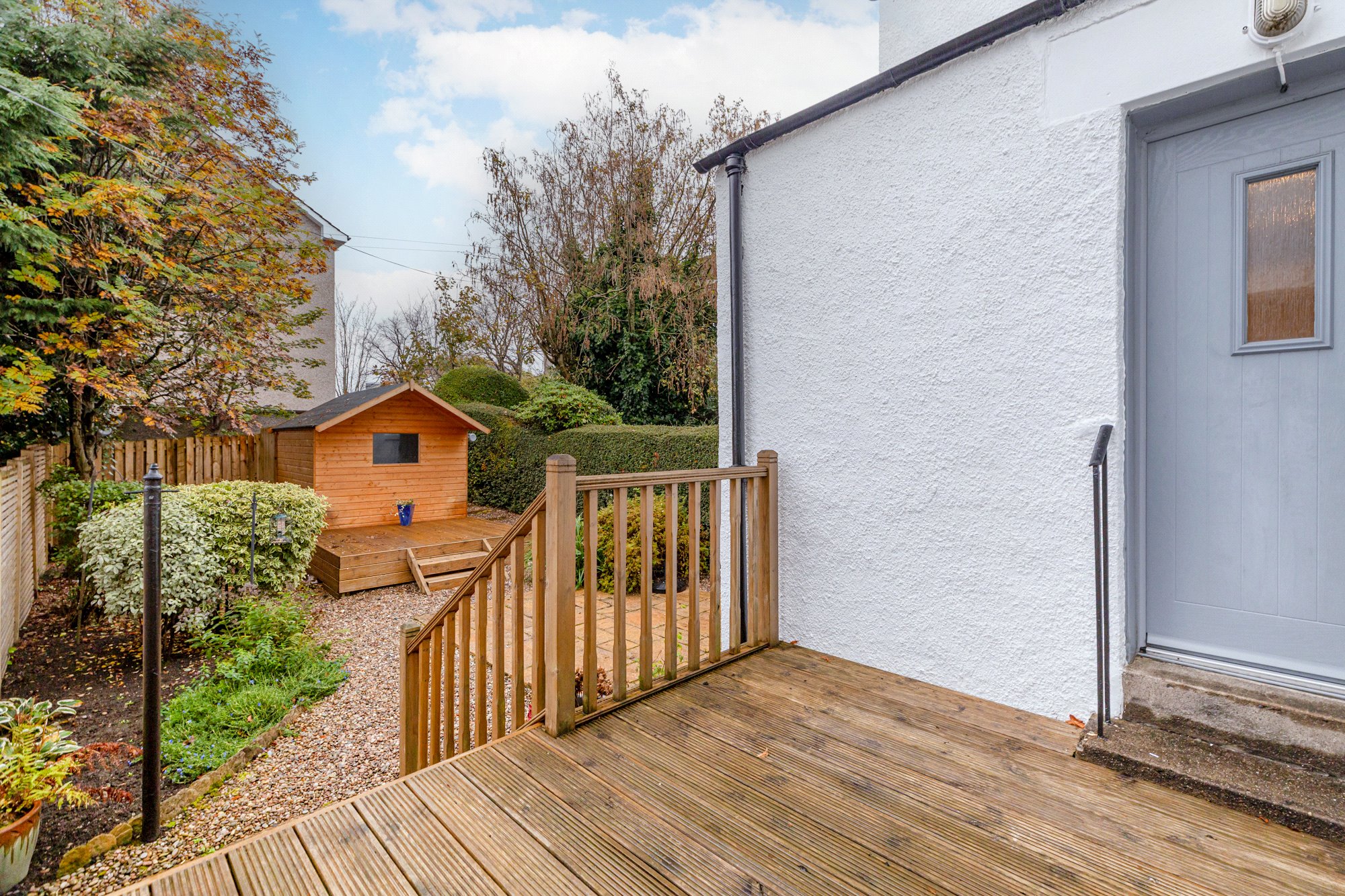 - Beautifully presented back garden with two raised sun decks, a paved patio, mature planting and a substantial, recently built wooden garden shed.