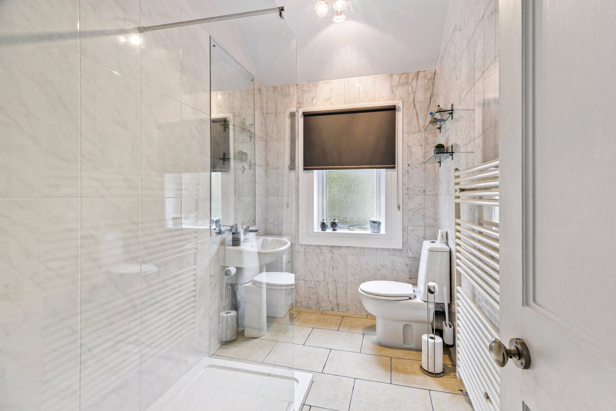- Well presented shower room with three piece white suite and window to the rear.