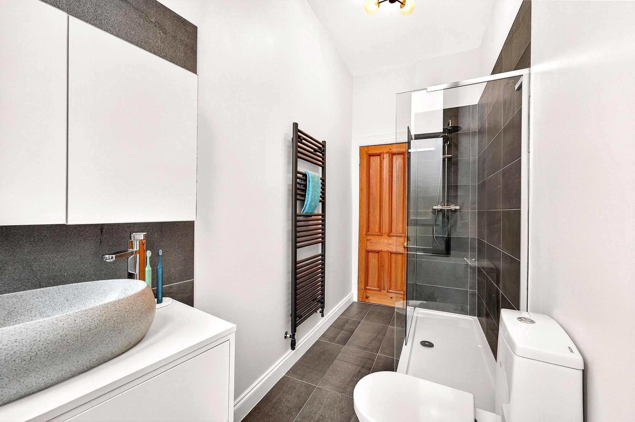 • Stylish shower room with high specification tiling and three-piece suite