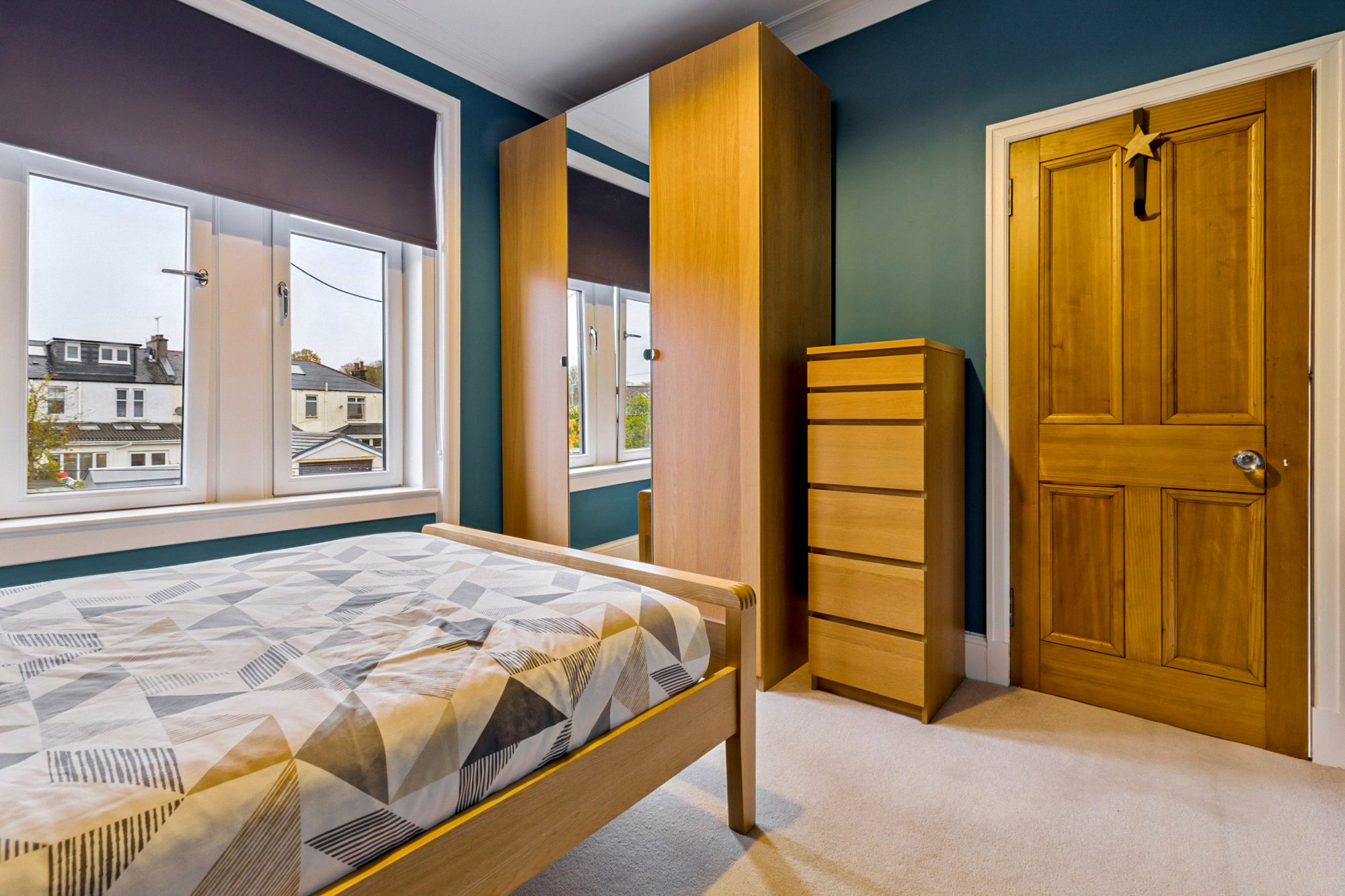 - Bedroom three with two section window to the front with plantation shutters.