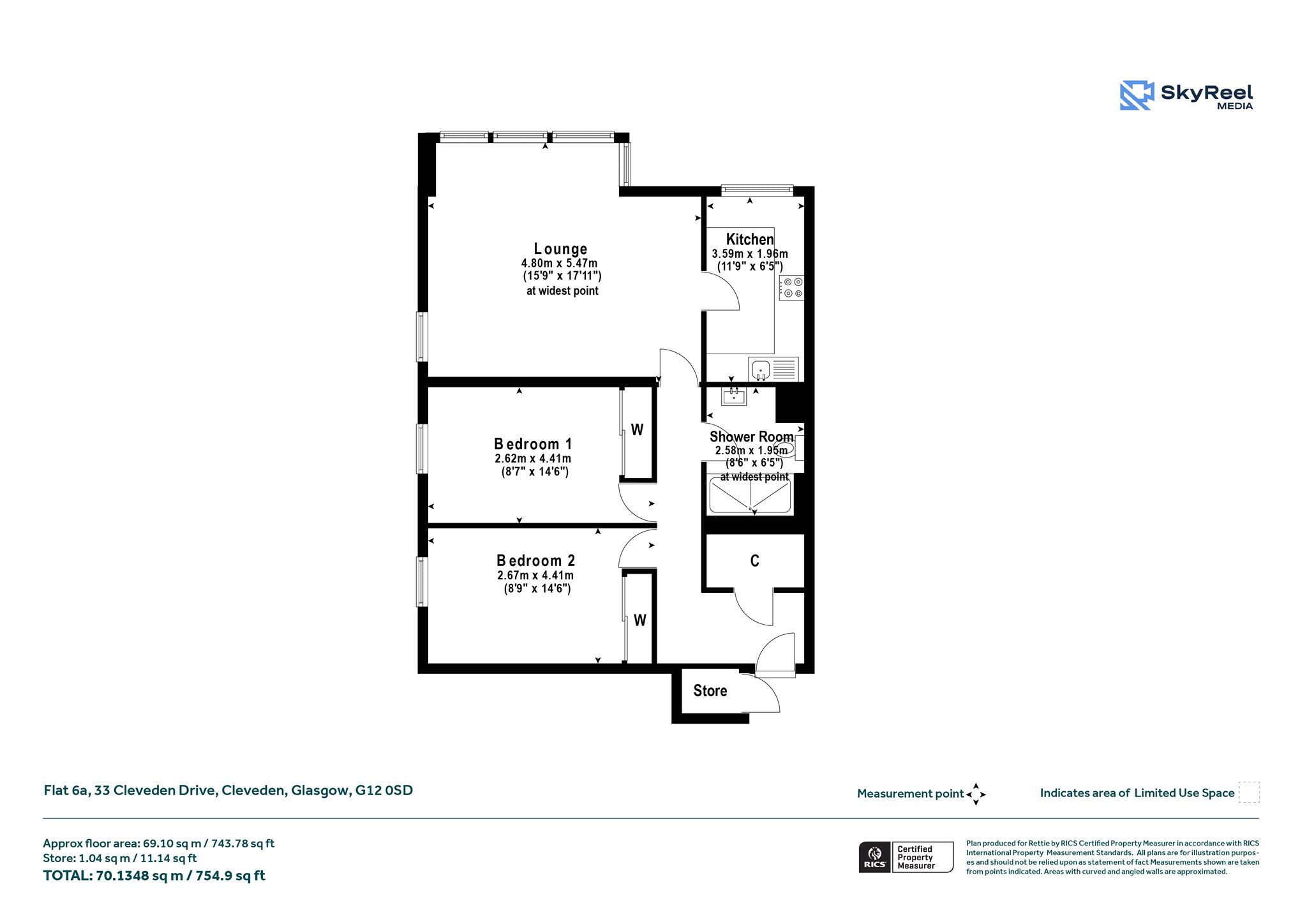 - Private secure storage cupboard accessed from the shared hallway.