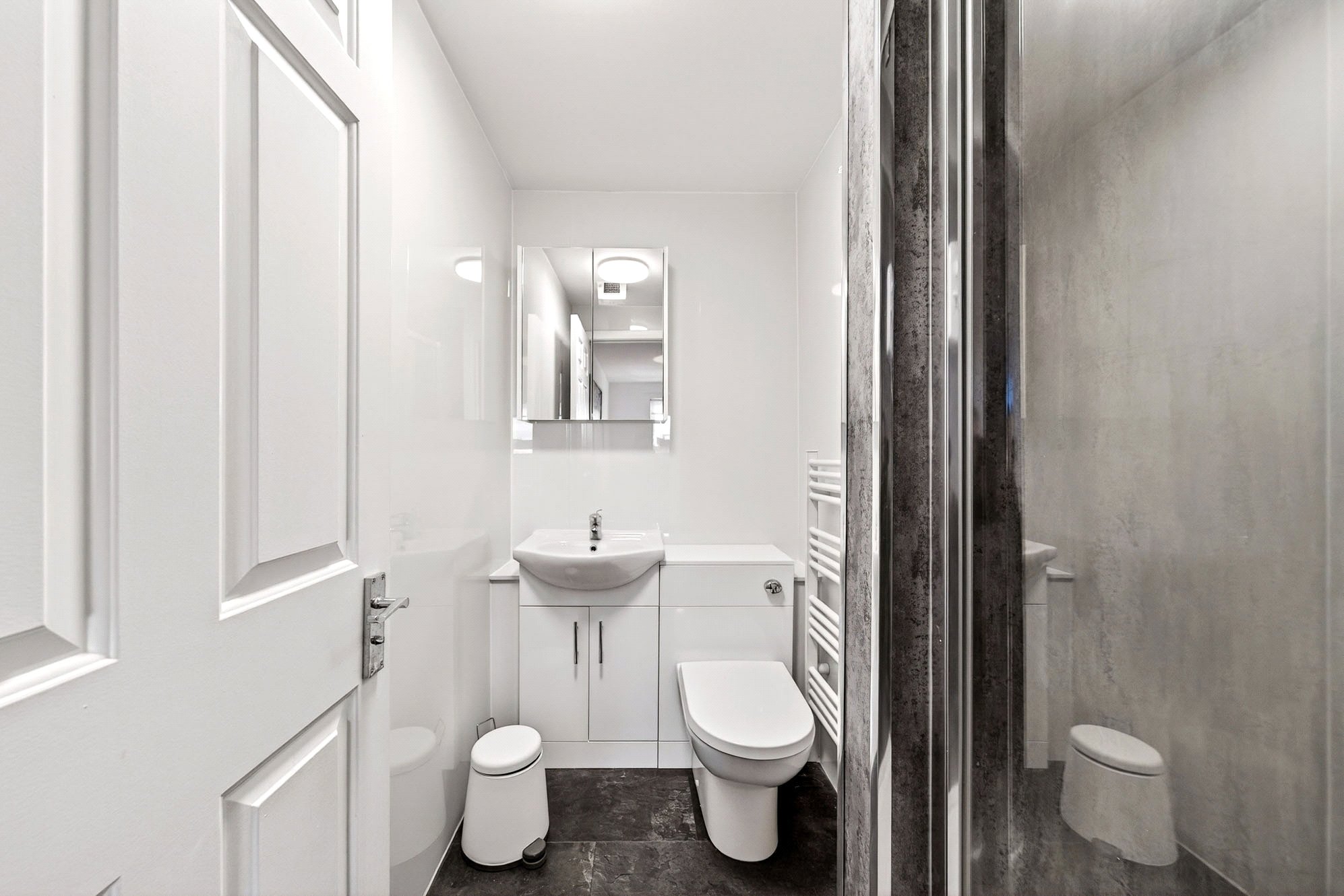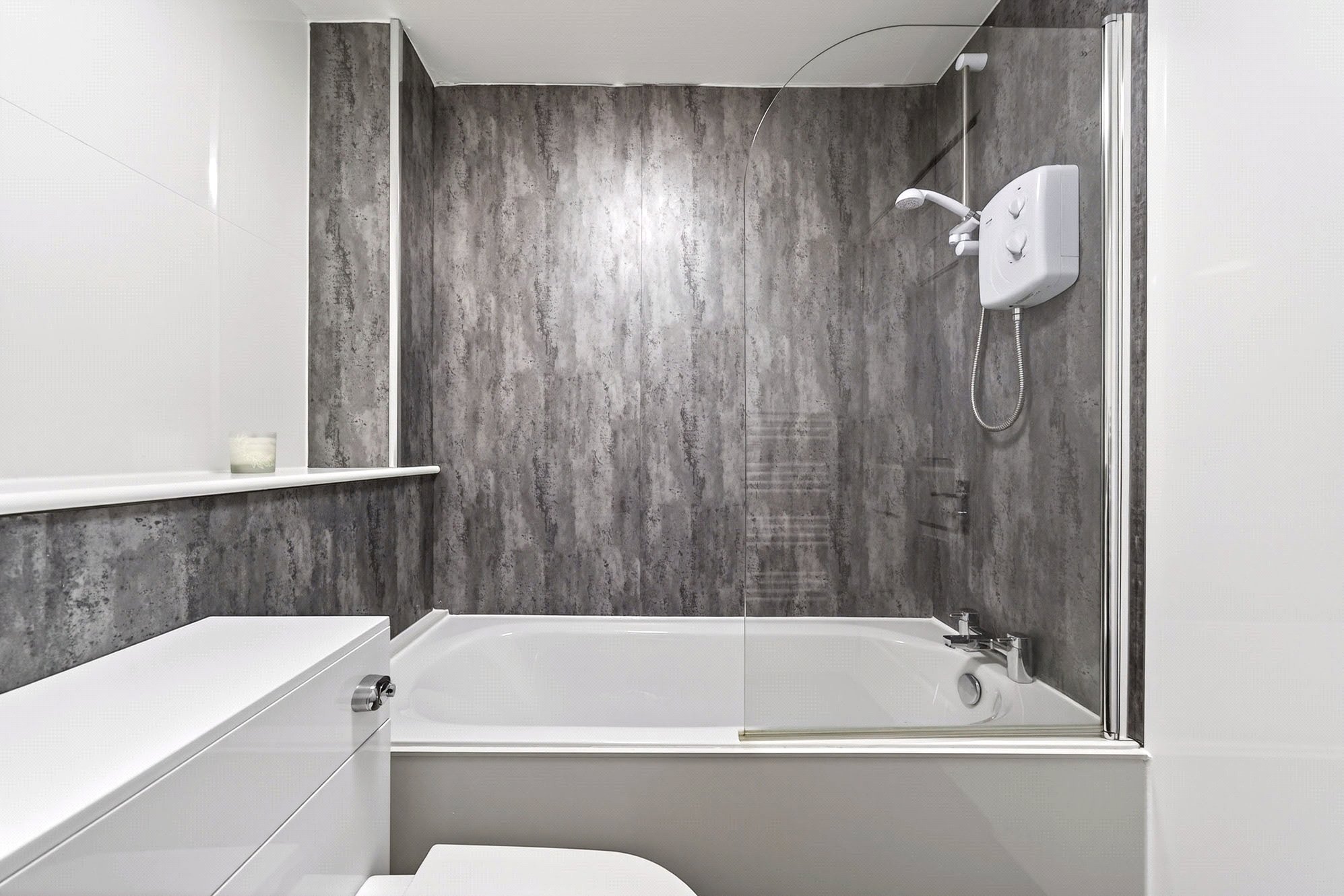 - Modern three piece family bathroom.