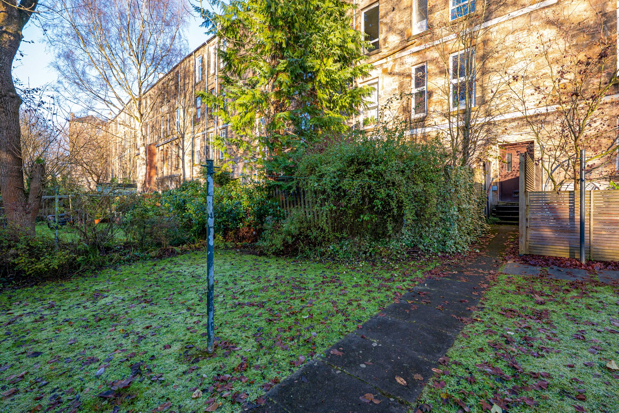 The apartment for sale is a substantial two-bedroom home that benefits from a preferred first-floor position at the most peaceful end of Hayburn Crescent. Thanks to its positioning, the property offers excellent privacy to both the front and rear, and always enjoys a high degree of quietude.