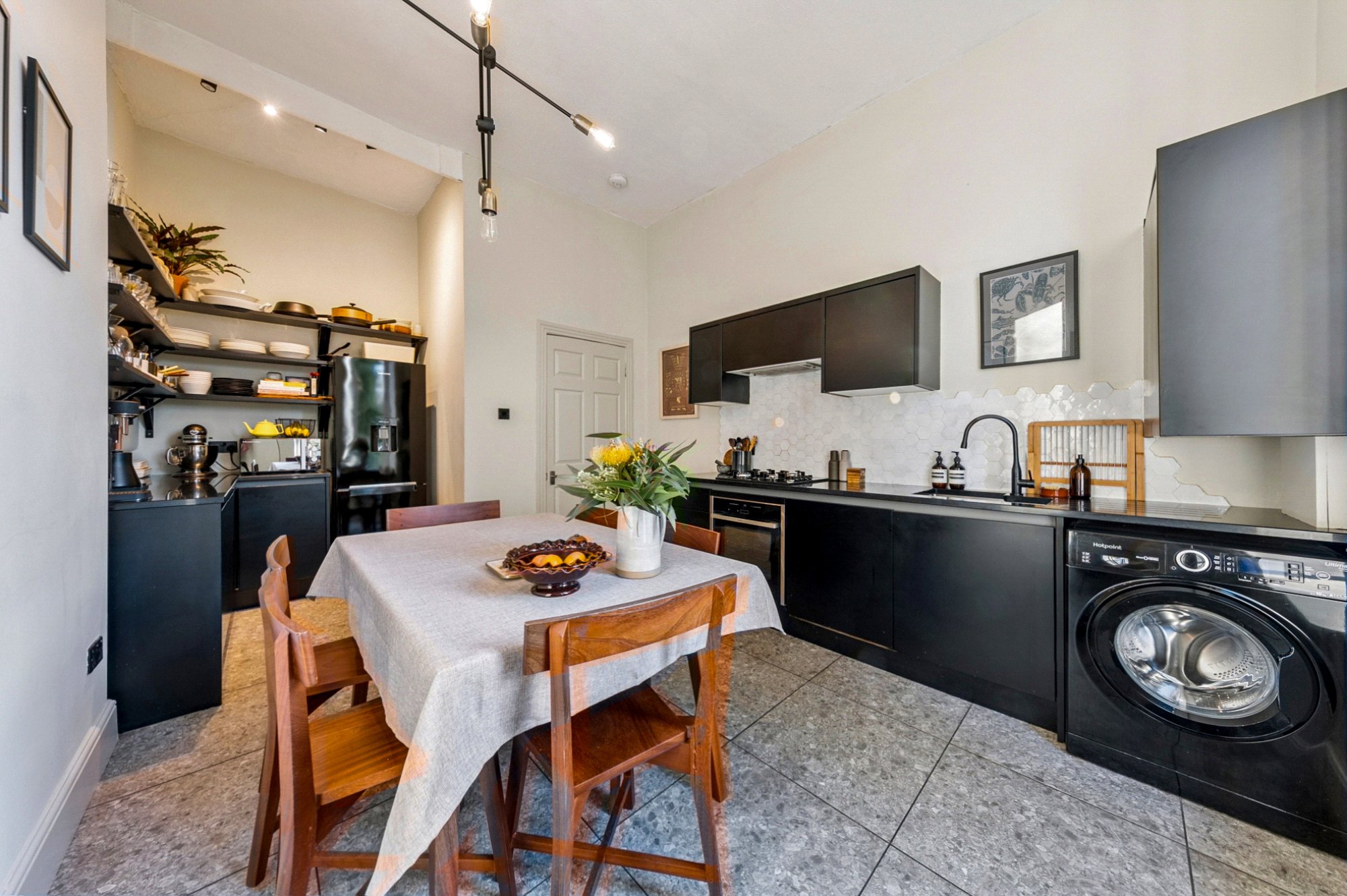 - Generous accommodation: two double bedrooms, bay-window living room, modern dining kitchen, broad reception hall, and traditional bathroom