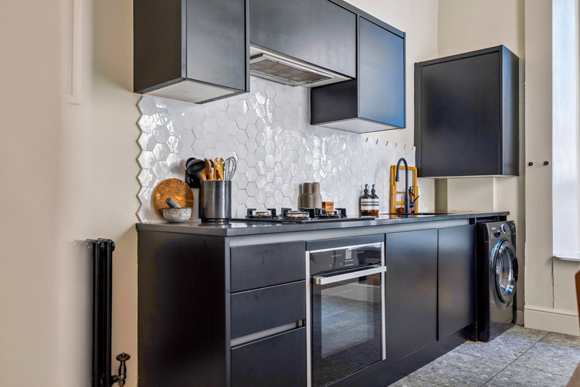 - Preferred first-floor position at a peaceful end of a tenement terrace — offering privacy and quiet