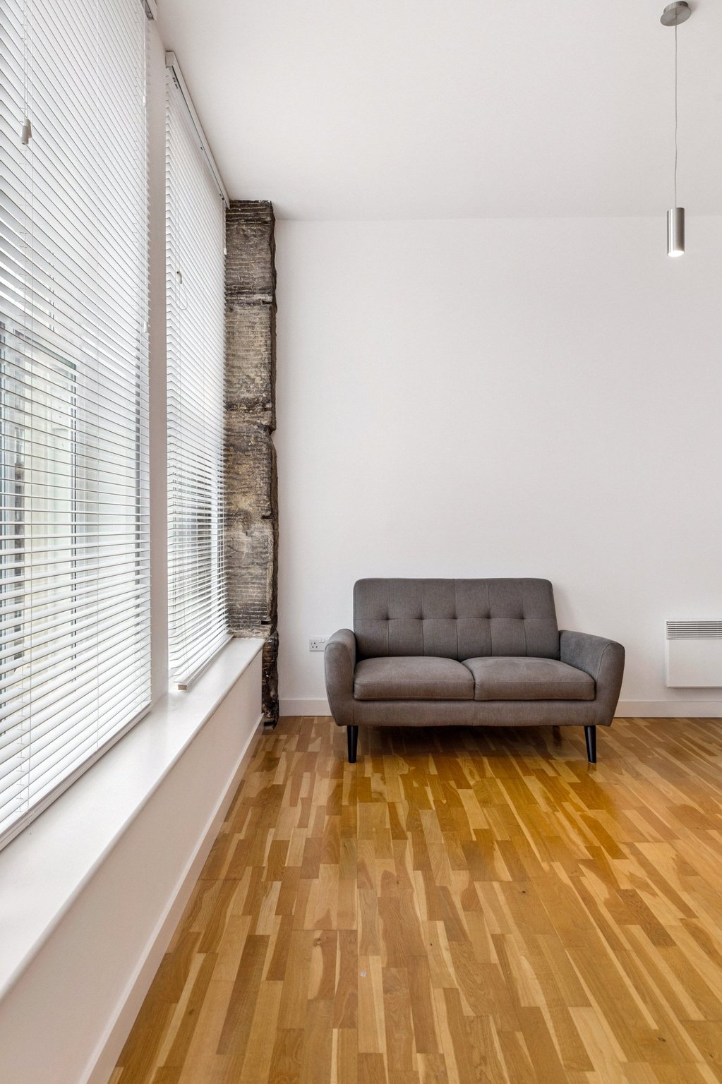 Situated within the Vienna Apartments, this former warehouse converted by Burrell Homes in 2009 is known for some of the city’s most generous floorplans. Notable highlights include a bright living area with so much space it is easy to zone off dining and a dedicated home-working space, off set, there is a modern kitchen with herringbone tiling, good storage with a laundry cupboard and an impressive 23ft hallway. The double bedroom overlooks a quiet central courtyard, offering a peaceful and welcome retreat from city life.