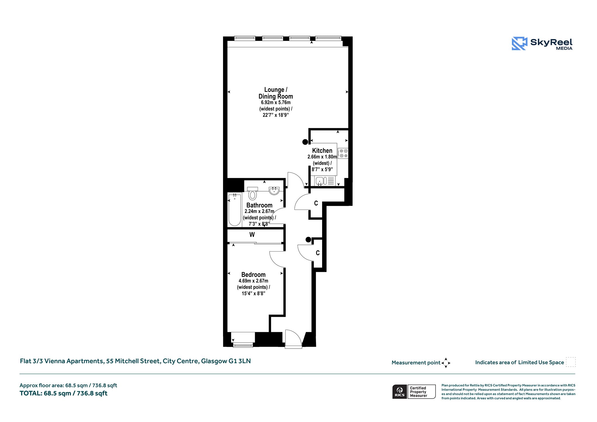 Mitchell Street is located in the Heart of Glasgow City Centre running parallel to Buchanan Street, part of Glasgow’s Style Mile. It is an area of Glasgow which has benefitted from significant redevelopment in the last few decades with both commercial developments and exclusive residential buildings. This setting offers one of the most prominent social locations Glasgow has to offer with wealth of amenities including both general and specialist shopping, wine bars and many highly acclaimed restaurants and is also conveniently located for access to the Merchant City. The property is in close proximity to Strathclyde & Caledonian Universities, the Glasgow School of Art, the SEC and The Clyde Auditorium. The area benefits from frequent public transport with easy access to Central and Queen Street Train Stations, and St Enoch subway stations. Public transport and road links are exceptional. Parking permits are available on subscription with next door NCP or Jamaica Street’s Q-Park.