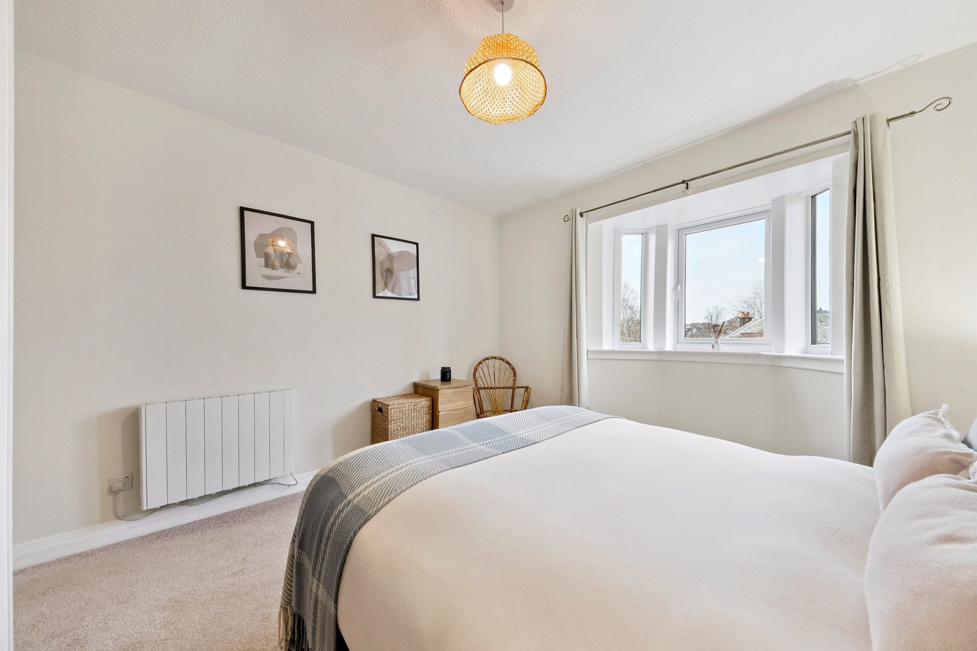 Tucked away in a peaceful & beautifully leafy modern development just off Kirklee Road, this particularly bright and well-appointed two-bedroom, top floor apartment occupies an elevated position in one of the West End’s most desirable locations — adjacent to the rear gates of the Glasgow Botanic Gardens, backing towards the tree lined banks of the River Kelvin and only around 0.3 miles from Byres Road and 0.5 miles from the University of Glasgow campus.