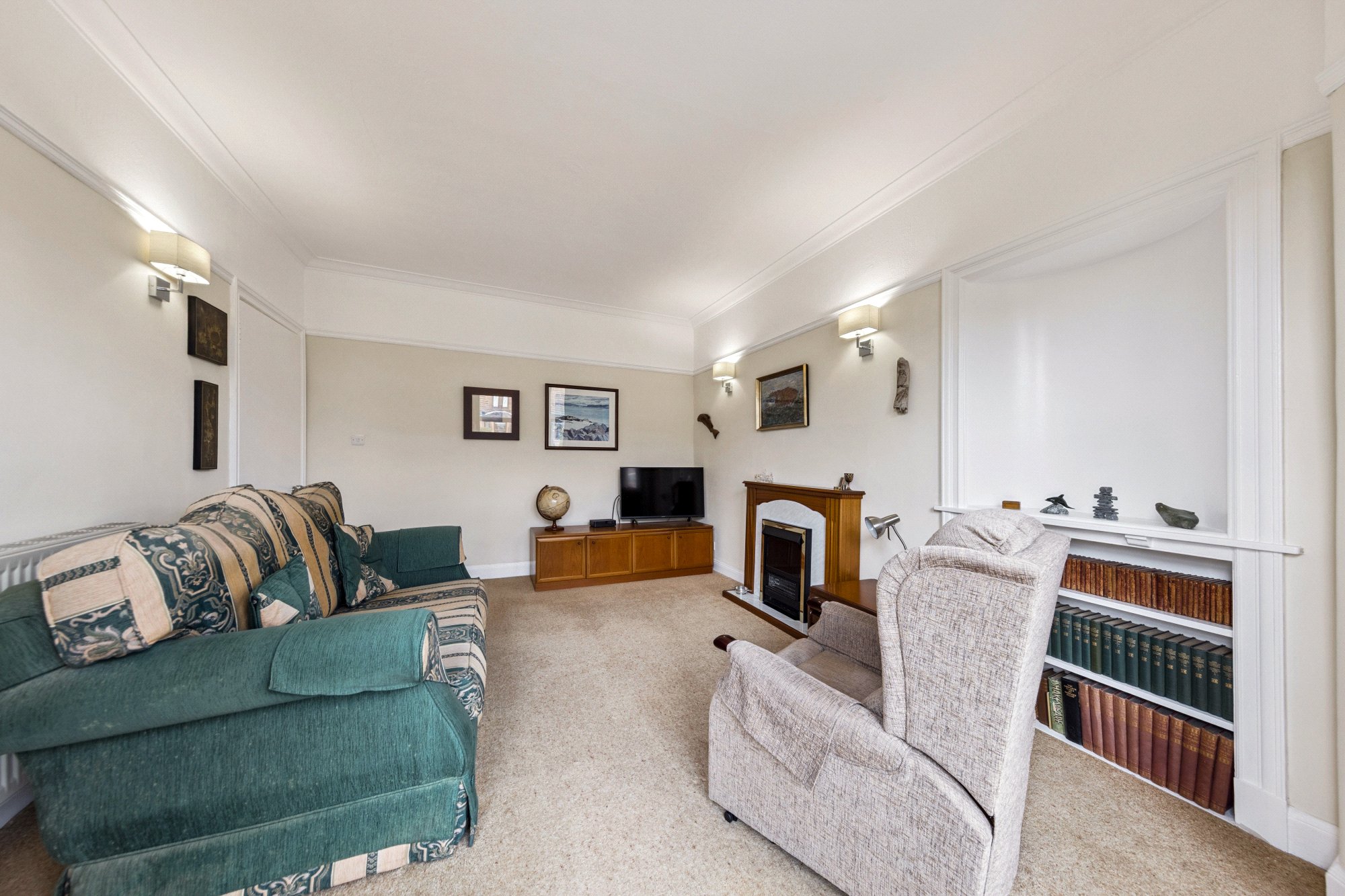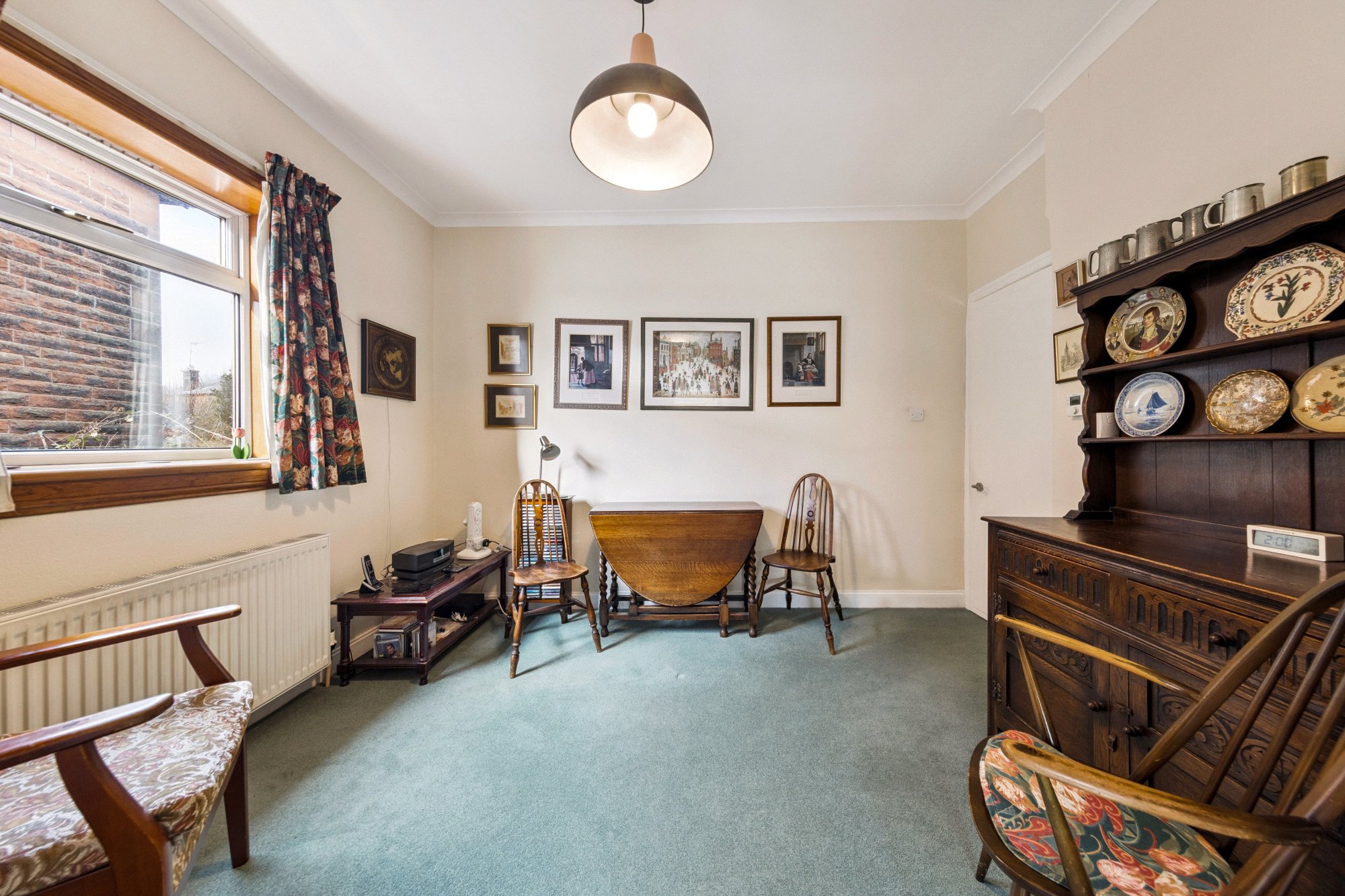 The home itself is an elegant red sandstone end terrace villa set within neatly maintained garden grounds which wrap around the front, side and rear. The current owner has clearly taken great pride in the gardens, which have been thoughtfully developed and carefully maintained over many years. The south-facing rear garden in particular benefits from excellent levels of sunlight and shelter, featuring raised planting beds that have proven to be highly productive. In addition, the property includes a detached garage which has been re-roofed and fitted with a new door in recent years.