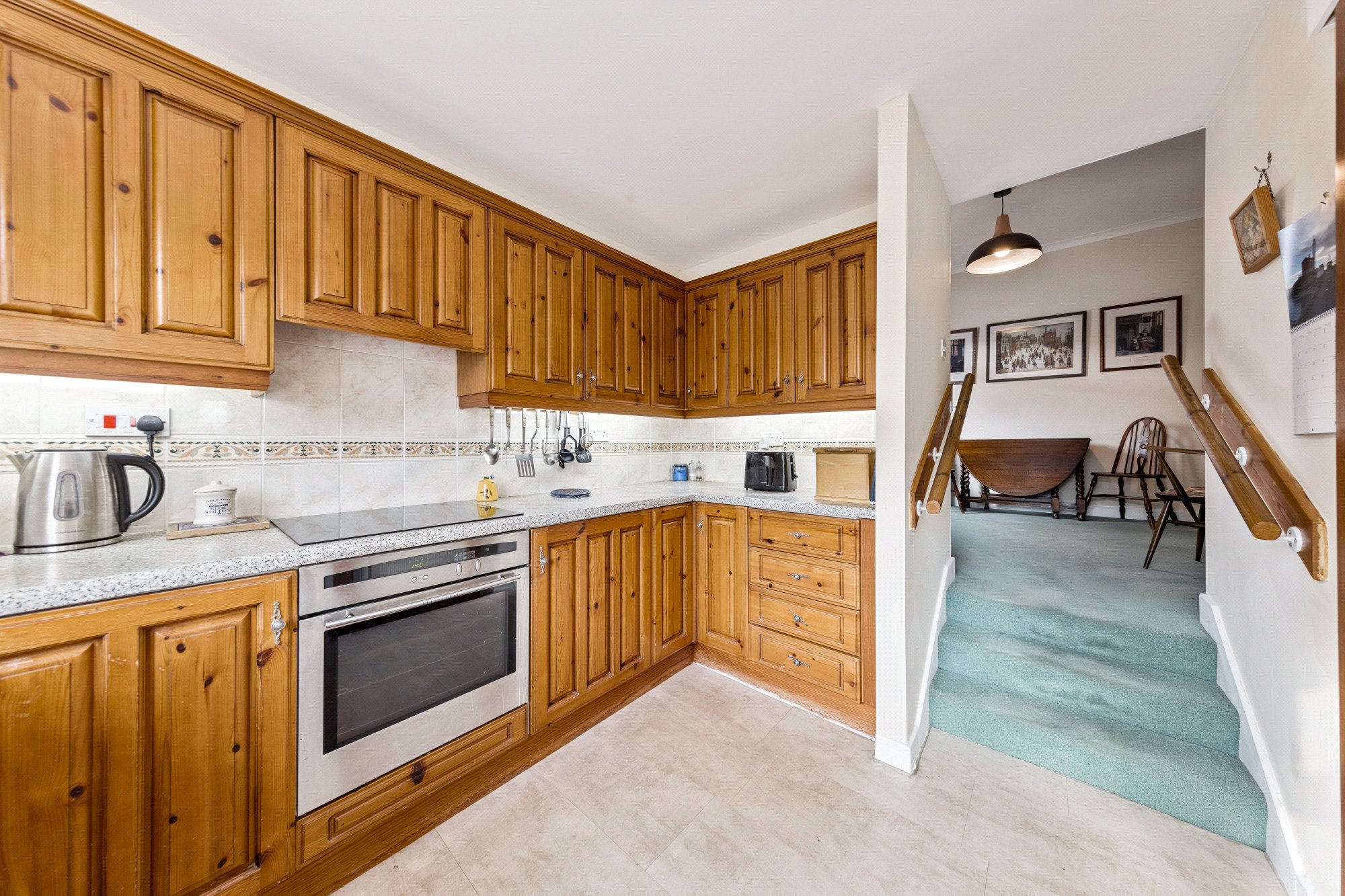 In brief, the accommodation extends to: a welcoming reception hall with staircase leading to the upper level; a bright bay-window living room to the front; and a dining room to the rear featuring a gable-end picture window and semi open-plan access, via a couple of steps, to the extended kitchen. The kitchen leads through to a rear vestibule, off which there is a utility room and shower room. The former kitchen has been repurposed as a dedicated home office but could equally serve as an occasional single guest bedroom if required.