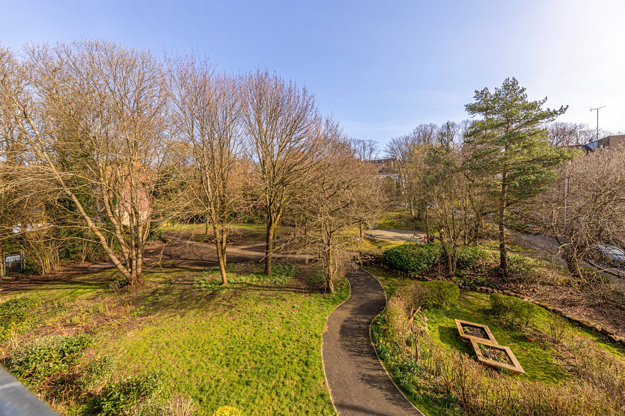 The apartment is held within a well-maintained development with secure entry and neatly kept communal areas. The elevated second floor position ensures excellent natural light throughout, while the surrounding greenery provides a particularly pleasant outlook and sense of privacy.