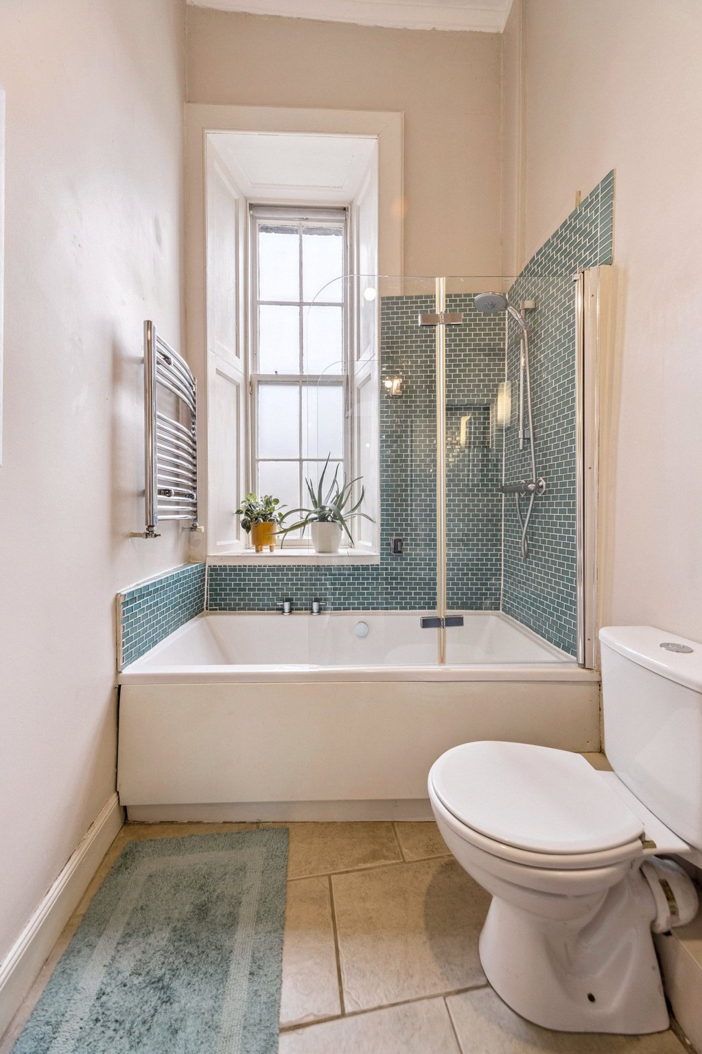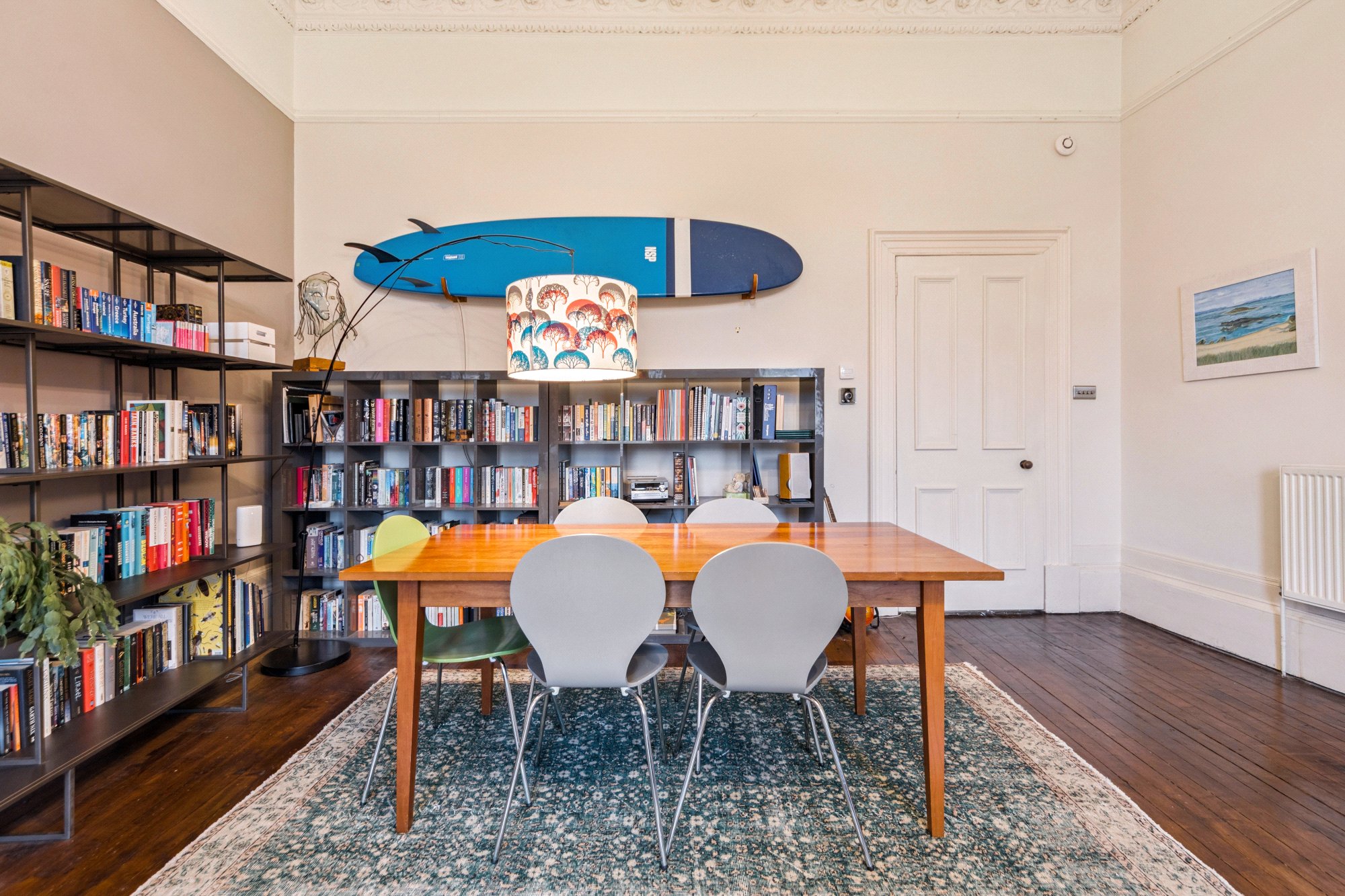 The heart of the home is a bright, front-facing lounge and dining space, while the dining kitchen to the rear can also comfortably accommodate dining. Twin picture windows in the lounge provide open aspects across the beautifully maintained central pleasure gardens of Belmont Crescent, creating a wonderful sense of space, light, and connection to the surroundings.