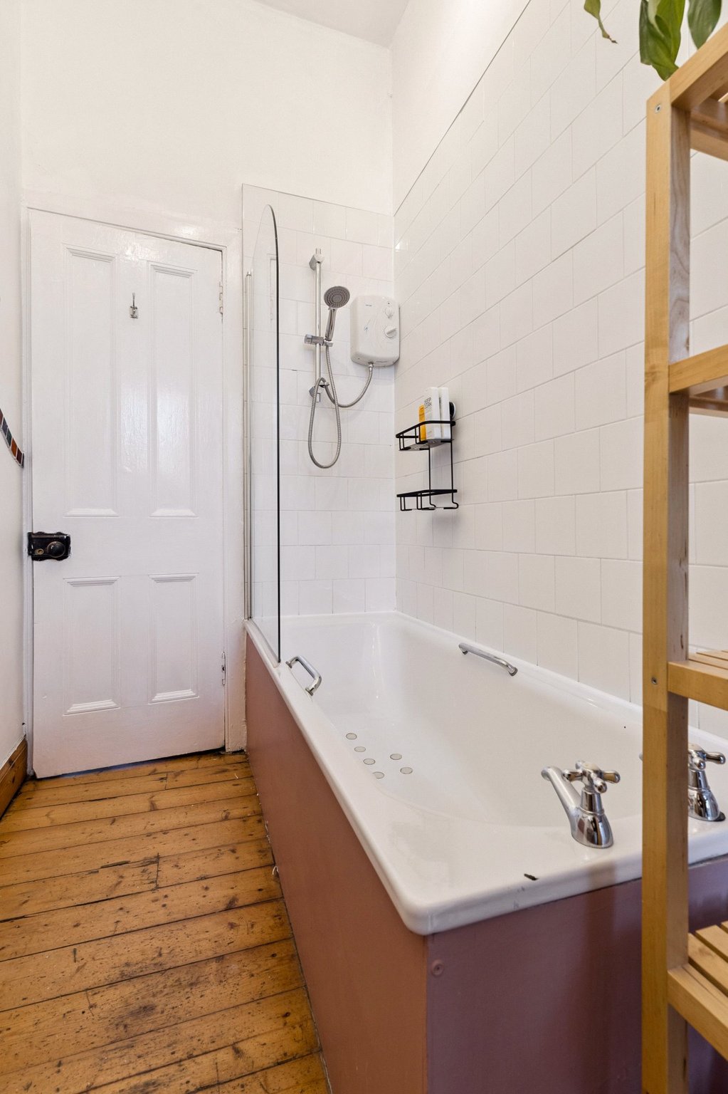 The impressive bay-windowed lounge forms the focal point of the home and benefits from a feature fireplace, creating an attractive and comfortable living space. To the rear, the dining-sized kitchen offers excellent space for both cooking and informal dining. The double bedroom is well proportioned and provides a comfortable retreat, while the traditional tenement bathroom is fitted with a white suite and shower over the bath.
