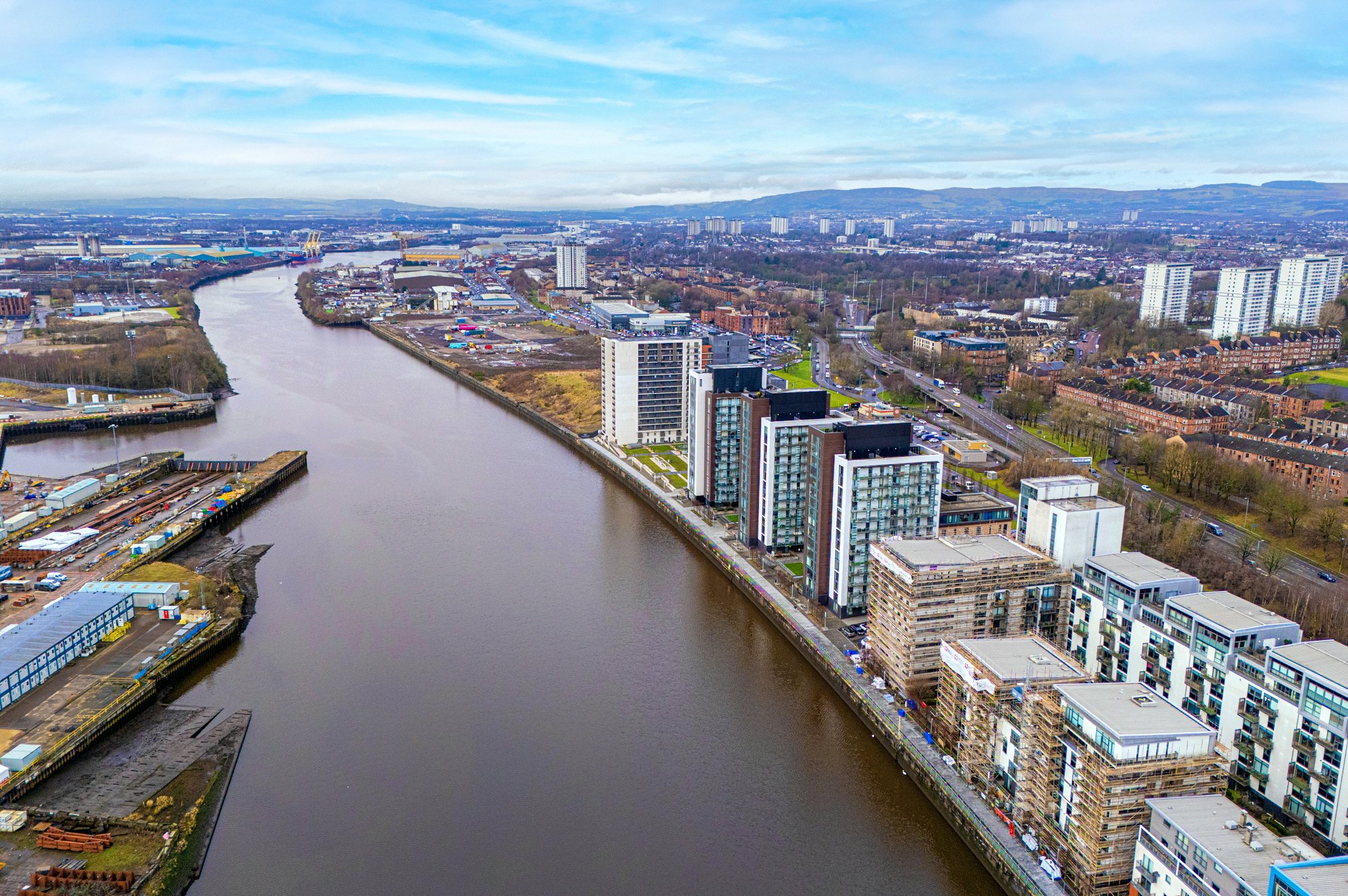 The internal accommodation includes a bright and spacious living/dining room, a modern, open plan kitchen two double bedrooms The principal bedroom benefits from a well-appointed en suite bathroom, while a stylish three-piece shower room serves the remainder of the property. A particular highlight is the superb west-facing balcony, which extends the full length of the property and can be accessed from living room and both bedrooms. This generous outdoor space provides a particularly pleasant outlook over towards The River Clyde. The development itself is well maintained and offers lift access to each level, ensuring ease of access, while an allocated parking space adds significant convenience.