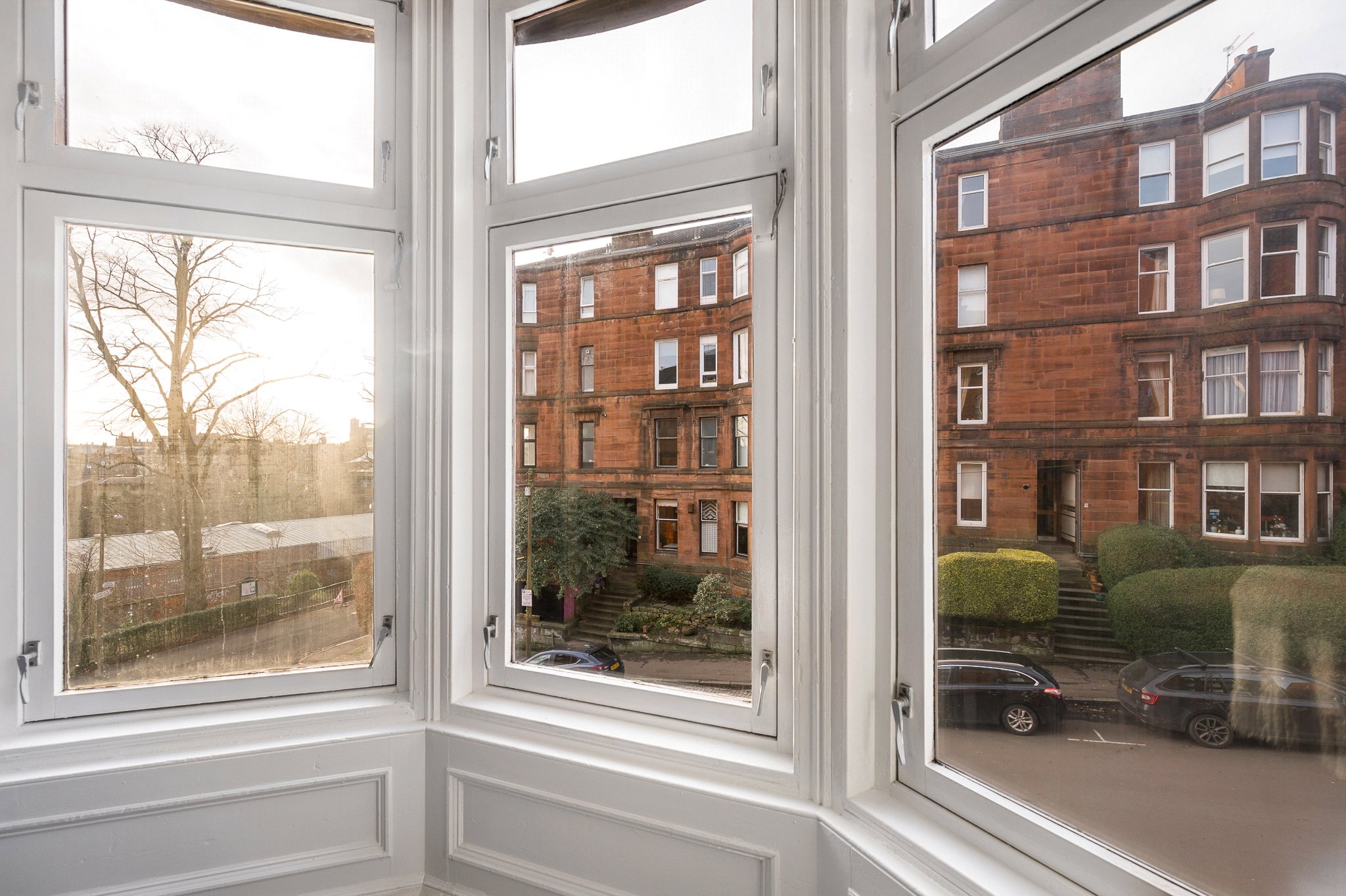 Yarrow Gardens is an attractive and particularly peaceful address in the leafy West End district of North Kelvinside. Known for its superb collection of beautiful sandstone tenements, this charming locale attracts a broad spectrum of buyers including professional couples, students, and academics who wish to live within walking distance of Glasgow University & Glasgow School of Art. In recent years this location has also become extremely sought-after amongst those with an artistic or creative background, who wish to be well-positioned for gaining quick access to the Royal Conservatoire, National Theatre, Whisky Bond, and Civic House. Yarrow Gardens is also very well-placed for quick access to major road networks and lies within minutes’ drive of access points to the M8 motorway – making this a brilliant address for professionals who split their working week between Glasgow and Edinburgh.