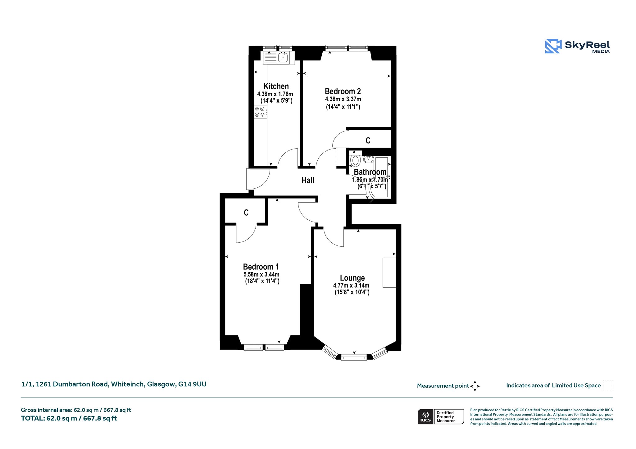 The interior has been carefully maintained over time, presenting a comfortable living space that is ready to move into, while also offering scope for a degree of modernisation to suit individual tastes. The accommodation is thoughtfully arranged, beginning with a bright and spacious bay-windowed lounge/dining room, where natural light floods the space and creates an inviting setting for both relaxing and entertaining. The galley-style kitchen is efficiently designed, providing ample storage and workspace, while the two generously sized double bedrooms offer flexibility for a variety of living arrangements. A three-piece bathroom off the reception hall completes the internal layout.