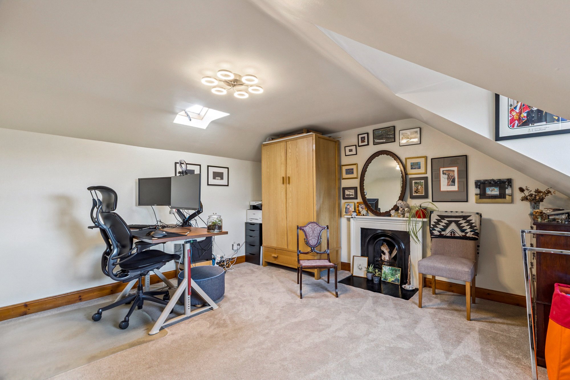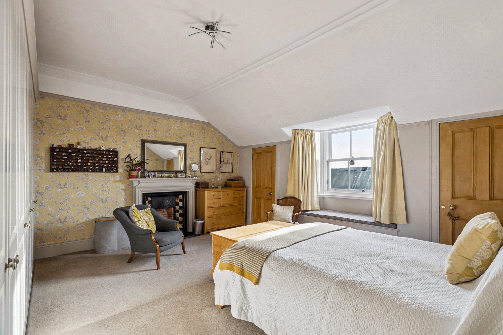 - The principal bedroom features a wide three section bay window with fitted window seat, a lovely place spot to sit and take in the lovely views. With focal point fireplace, integrated “wall to wall” wardrobes and access to two eaves storage cupboards.