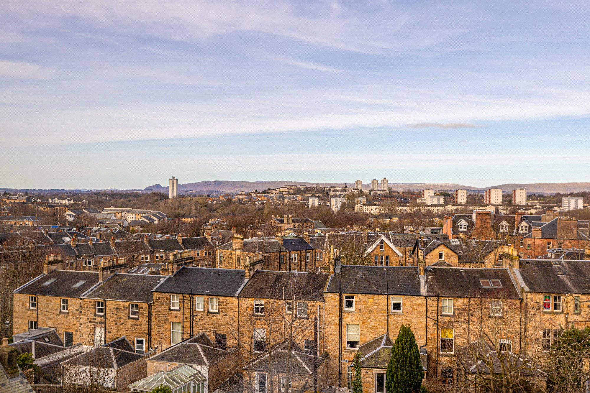 Captivating outlooks towards Ben Lomond and the Campsie Fells are enjoyed from this spectacular three/four bedroom third floor duplex apartment, formed within a substantial townhouse conversion on the iconic Kirklee Terrace, designed by renowned architect Charles Wilson and built between 1847 and 1863.