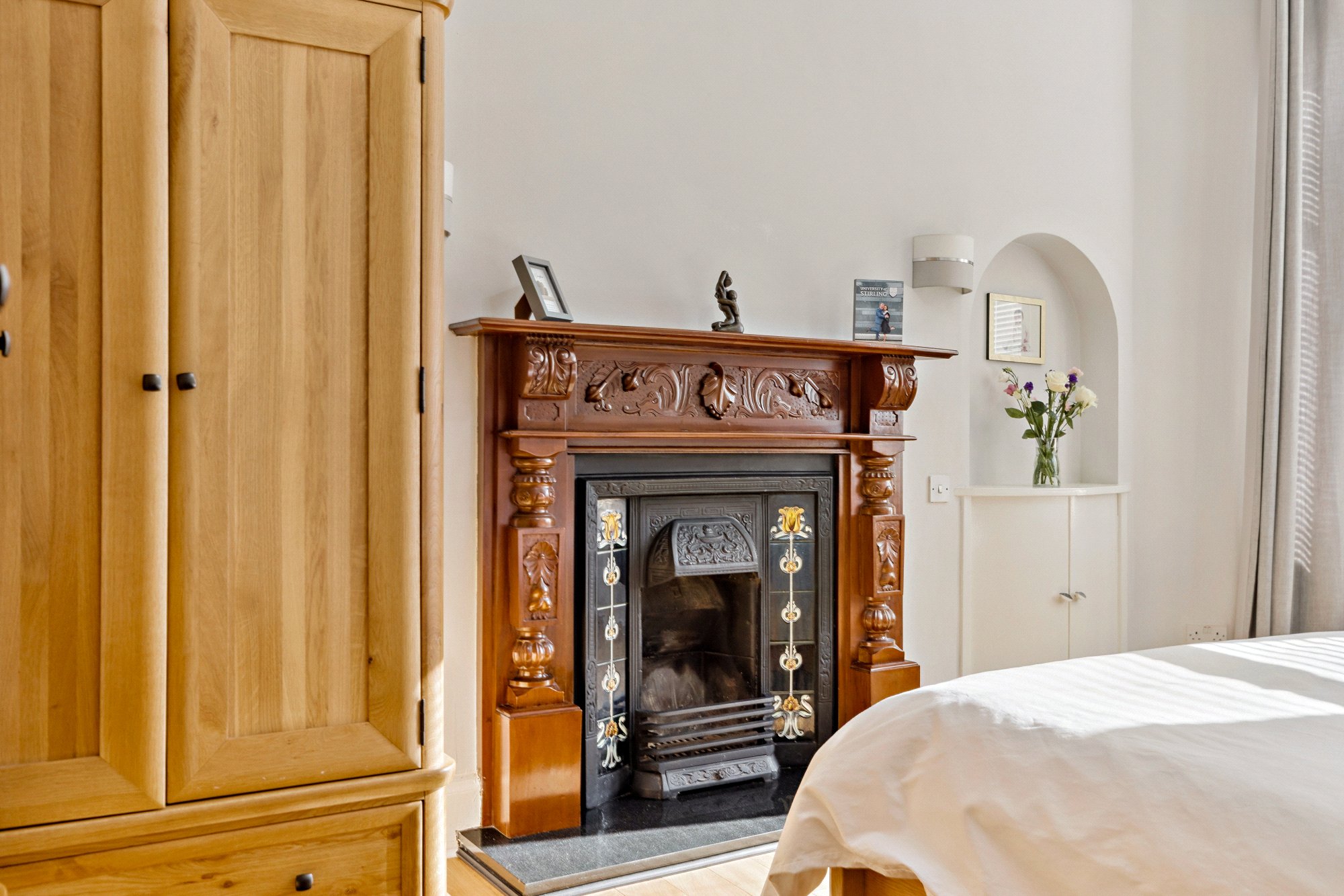 - Exceptionally spacious principal bedroom with four section bay window to the front and traditional original fire surround.