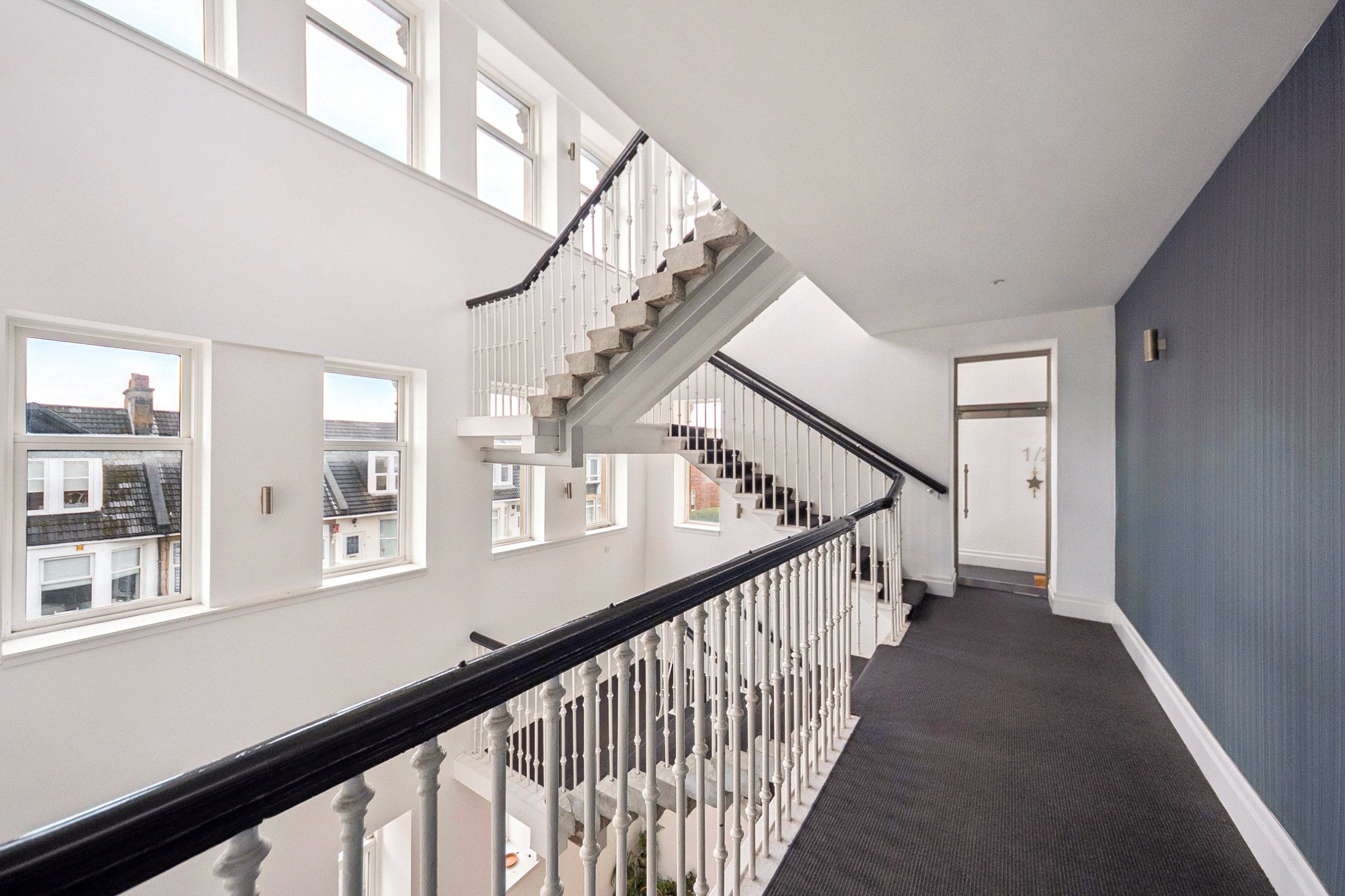 - Striking communal atrium with grand suspended staircase