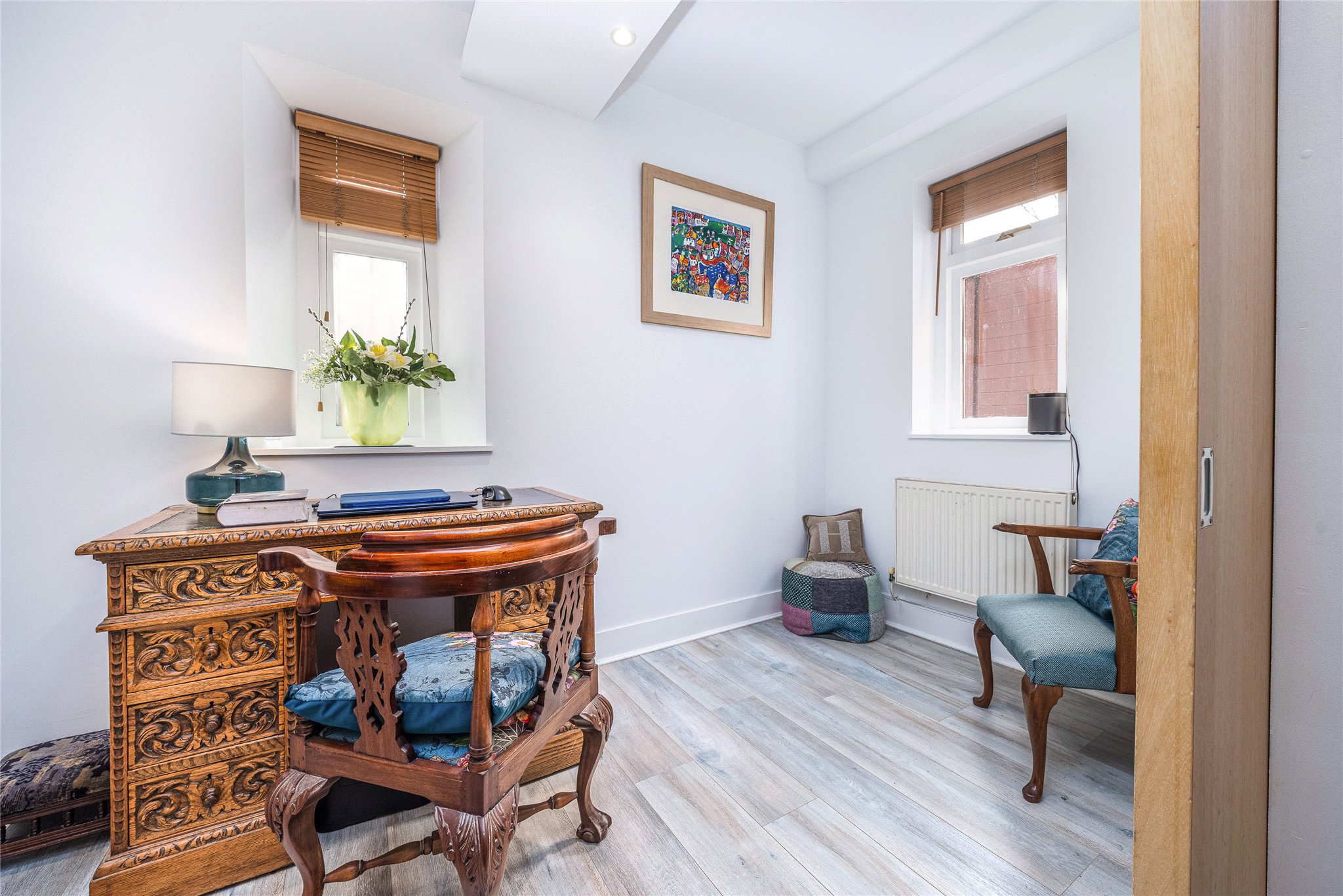 The rare accompaniment of private outside space will “tick the last box”, the south facing courtyard forming a genuinely charming extension of the accommodation and posing as the occasional “sun trap” – weather permitting. Sheltered behind the ivy-clad fence and neatly framed by fitted planters, it offers a wonderfully secluded spot for morning coffee, an evening glass of wine, or relaxed entertaining in the warmer months. This low maintenance garden captures excellent light throughout the day and provides that coveted feeling of indoor/outdoor living, particularly special given the discreet Mews setting and the leafy outlook towards the neighbouring allotments.