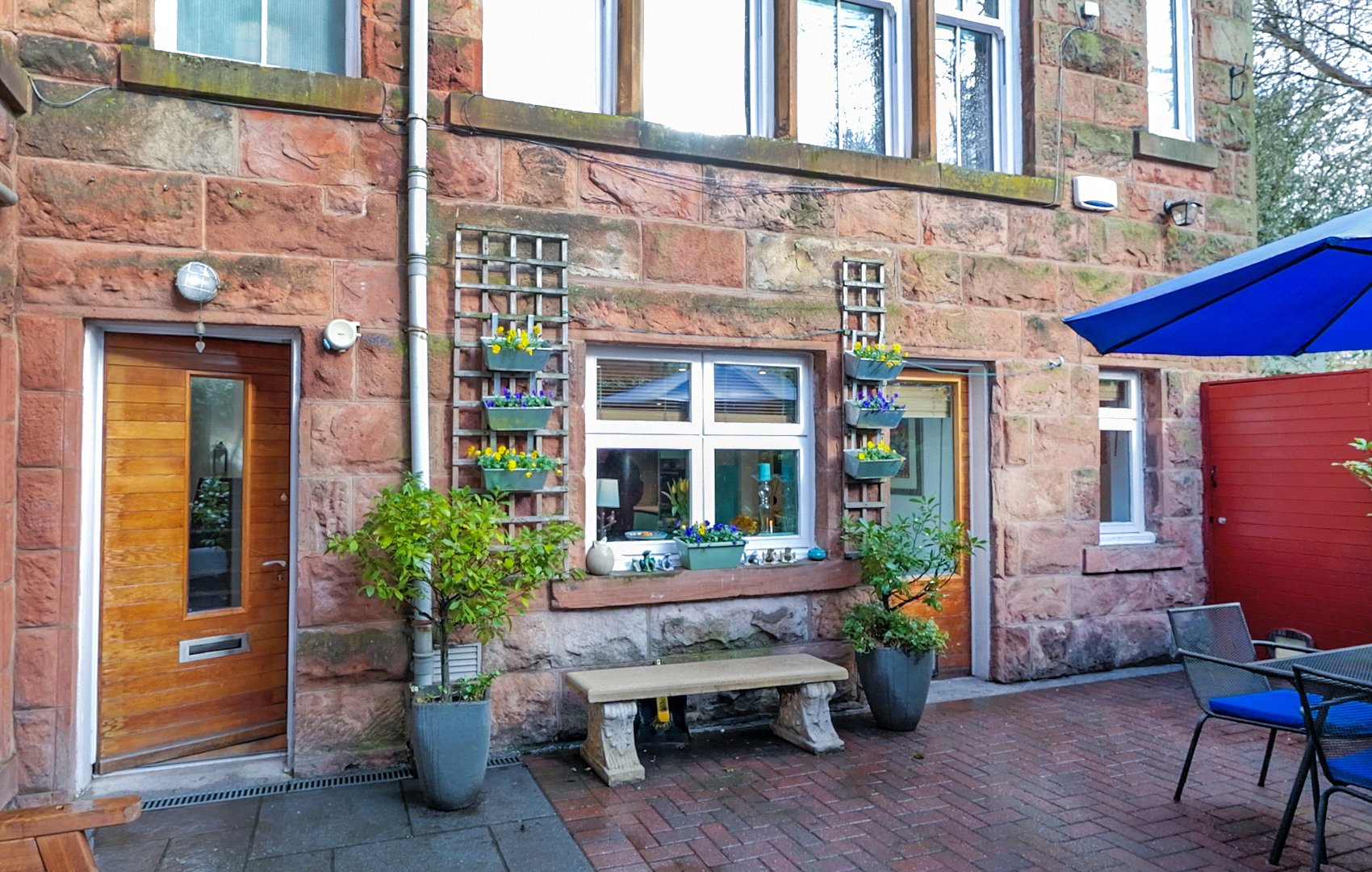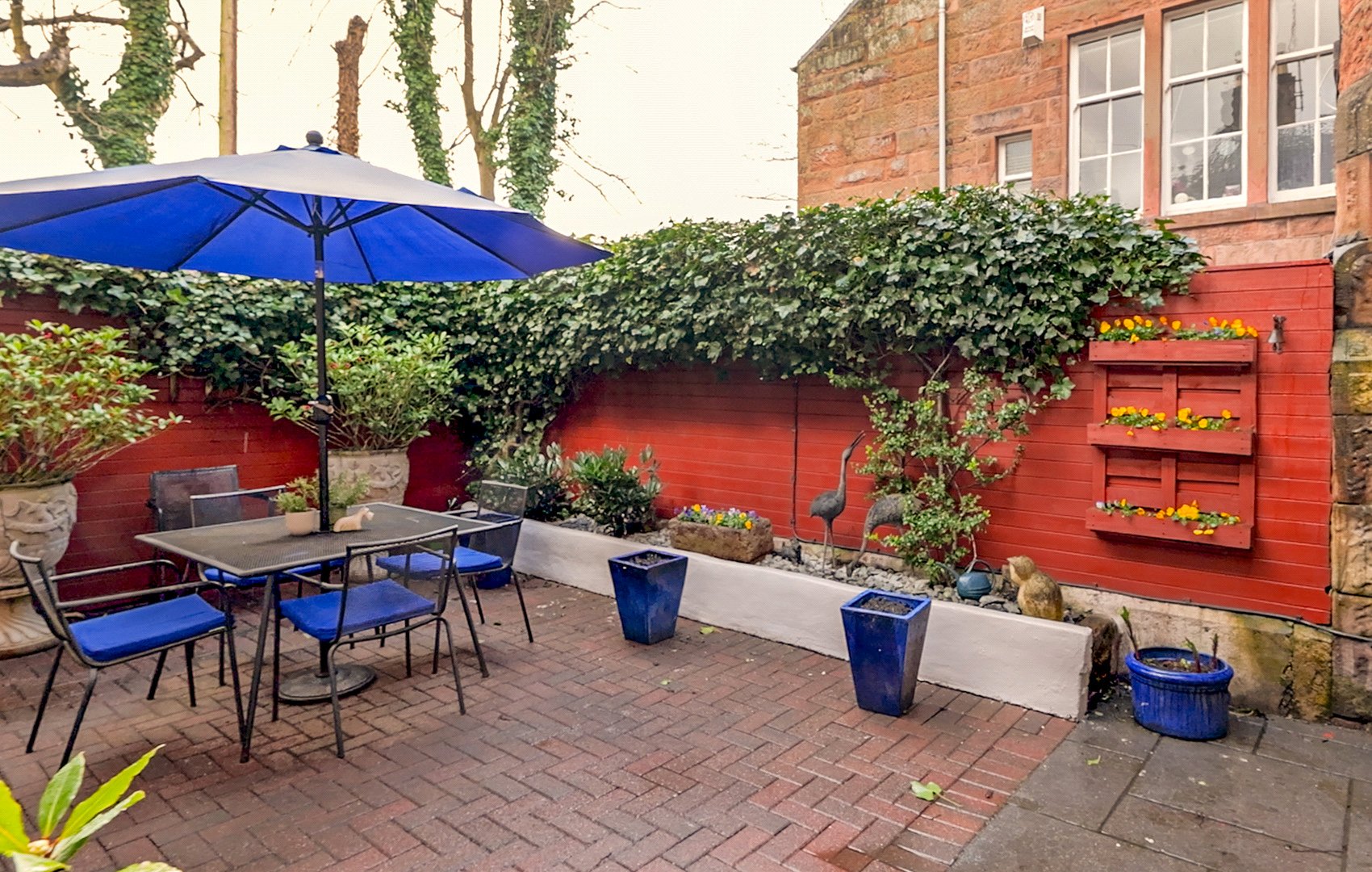 An utterly remarkable Mews house, veiled from sight by a curious ivy clad timber fence, and harbouring a delightful south facing private courtyard. The location is discreetly poised alongside the Kelvinside Julian Allotments in the coveted Kirklee Area, rendering this “downsizer’s dream” as one of the West End’s, best kept secrets.
