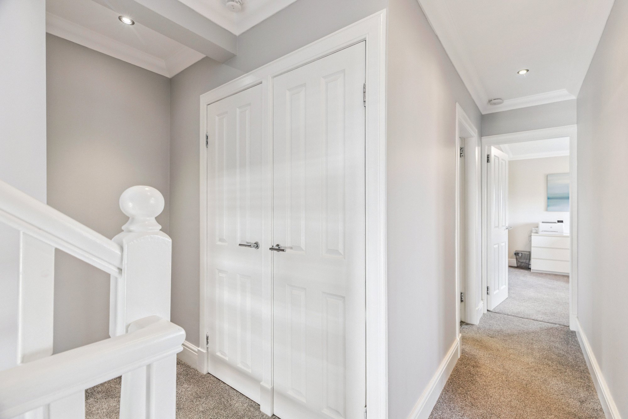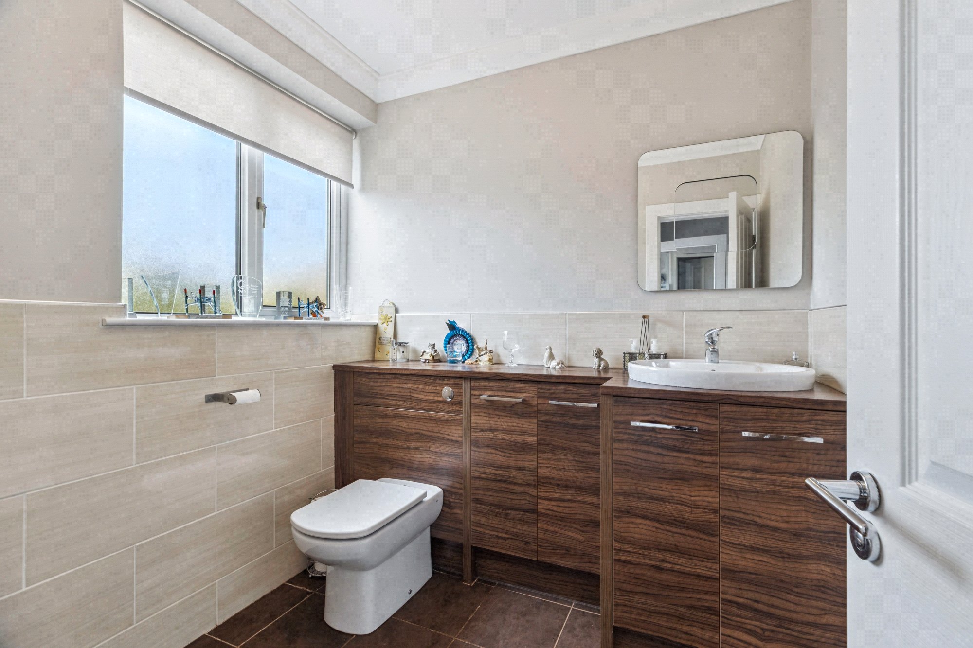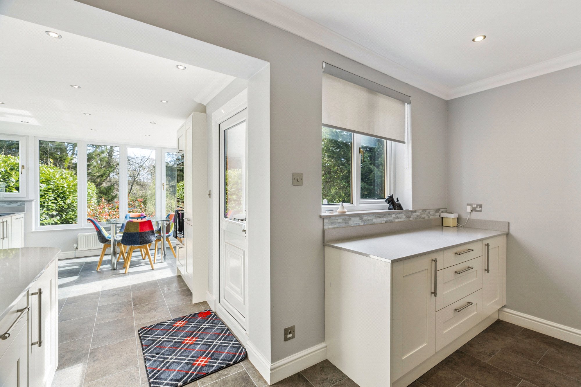 The ground floor provides a superb balance of formal and informal living areas. A spacious lounge with picture window to the garden sits at the heart of the home, complemented by a separate dining room—perfect for entertaining. The impressive dining kitchen offers generous proportions for modern family life, with ample space for cooking, dining, and socialising and provides access onto the decked terrace for al-fresco dining. A further family room adds flexibility, while another sitting room adds to the flexible family layout with views and access out to the garden. Additional practical features include a utility room, WC, and internal access to the integral garage.