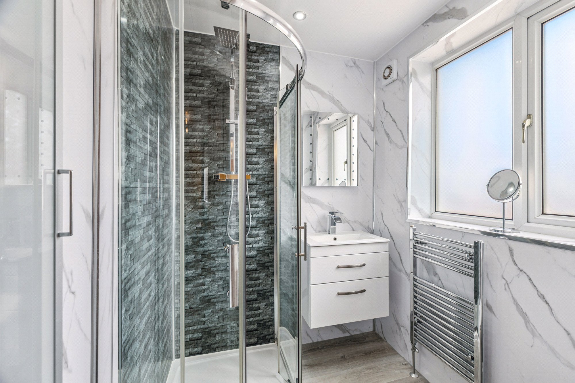 Upstairs, the first floor hosts three well-proportioned bedrooms. The principal bedroom benefits from its own en-suite, while the remaining bedrooms are served by a stylish family bathroom.