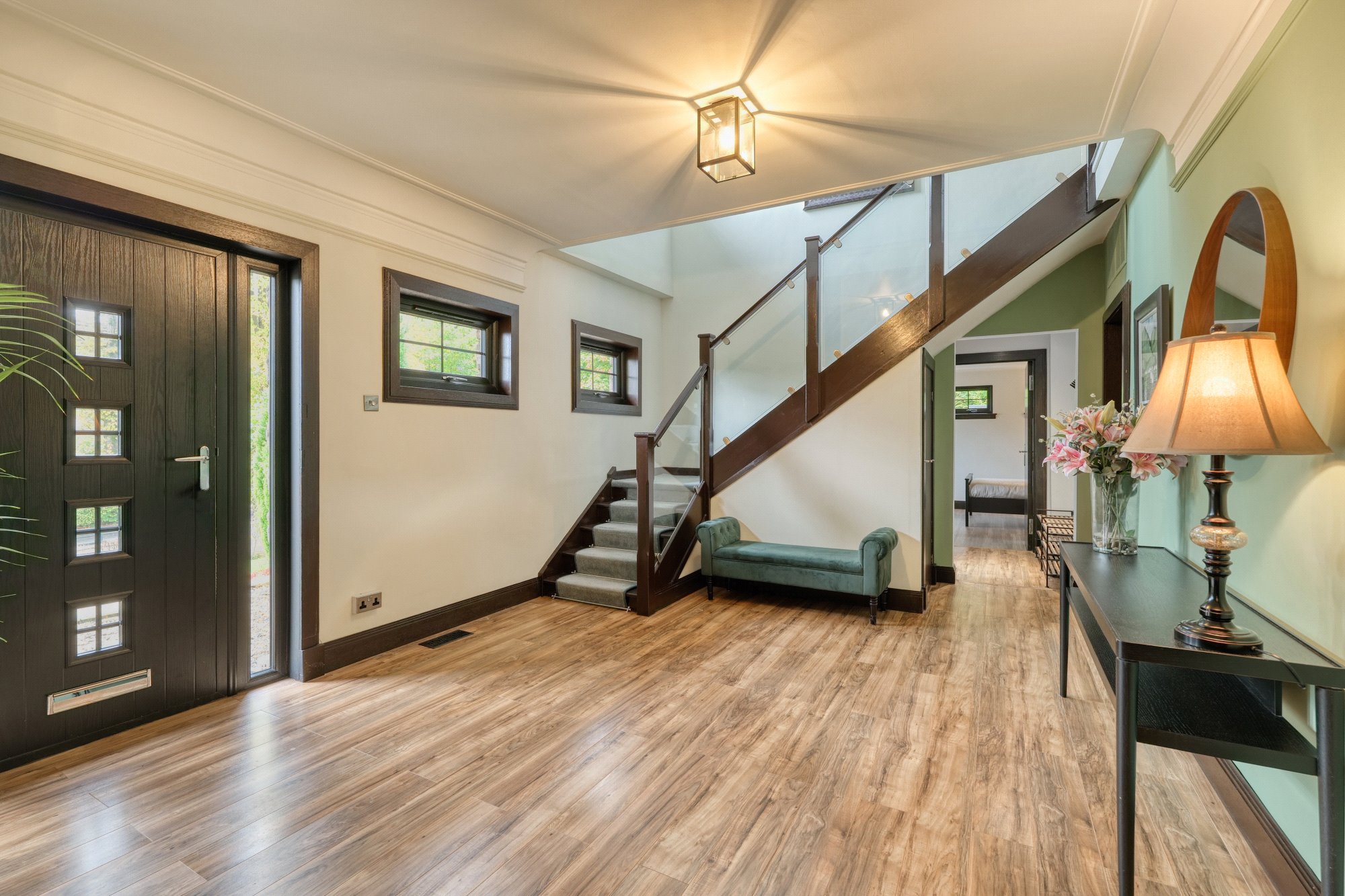 The property further benefits from bespoke double glazing, underfloor heating and blown air heating system and reclaimed stone from historic buildings.